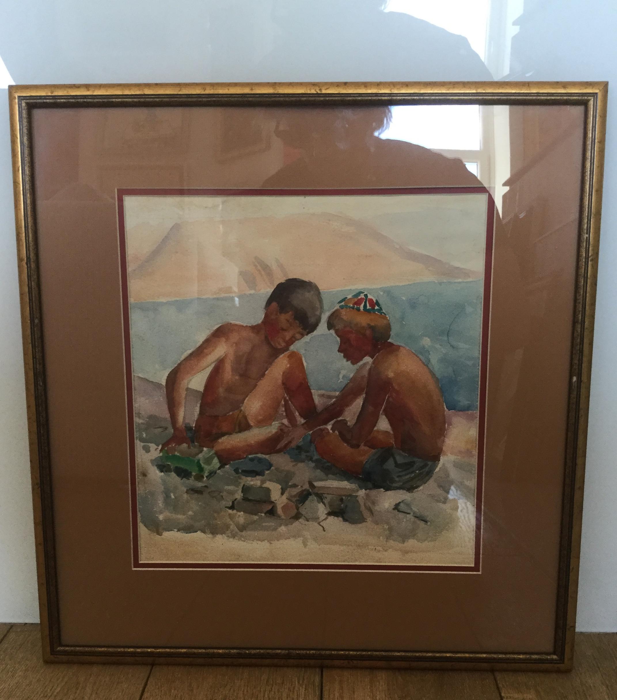 Кондиайн Элеонора Максимилиановна, "Два друга", бумага/акварель, 30 х 32 см., 1967 г.