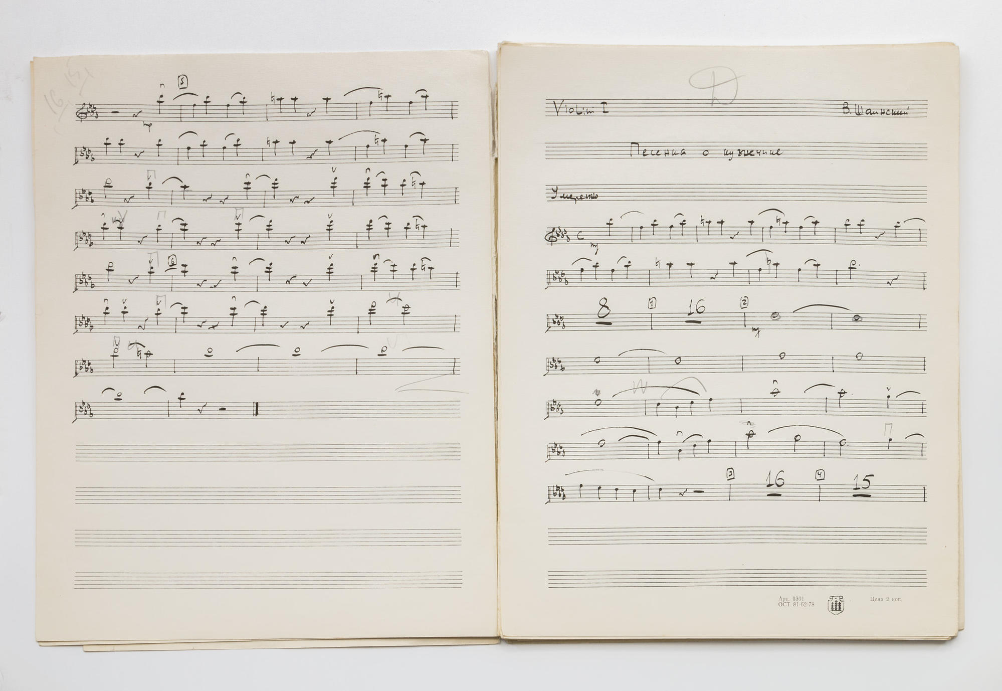 Лот №139 Шаинский В.Я. (1925-2017) Рукописные ноты/партитура "Песенки кузнечика" из телемультфильма "Приключения Незнайки" для детского хора и оркестра. [Автограф автора] СССР, 1970-е годы. Стихи Николая Носова. Иструментальная обработка В.Шаинского. Состав оркестра: флейта, кларнет, сакс-альт, труба, тромбон, ударные, аккордеон, электрогитара, скрипки, контрабас. 58 стр. Состояние: хорошее, небольшие загрязнения, повреждения Эстимейт: 40,000 — и выше Подробнее о лоте: http://antiqueauction.ru/lot/165-18-1