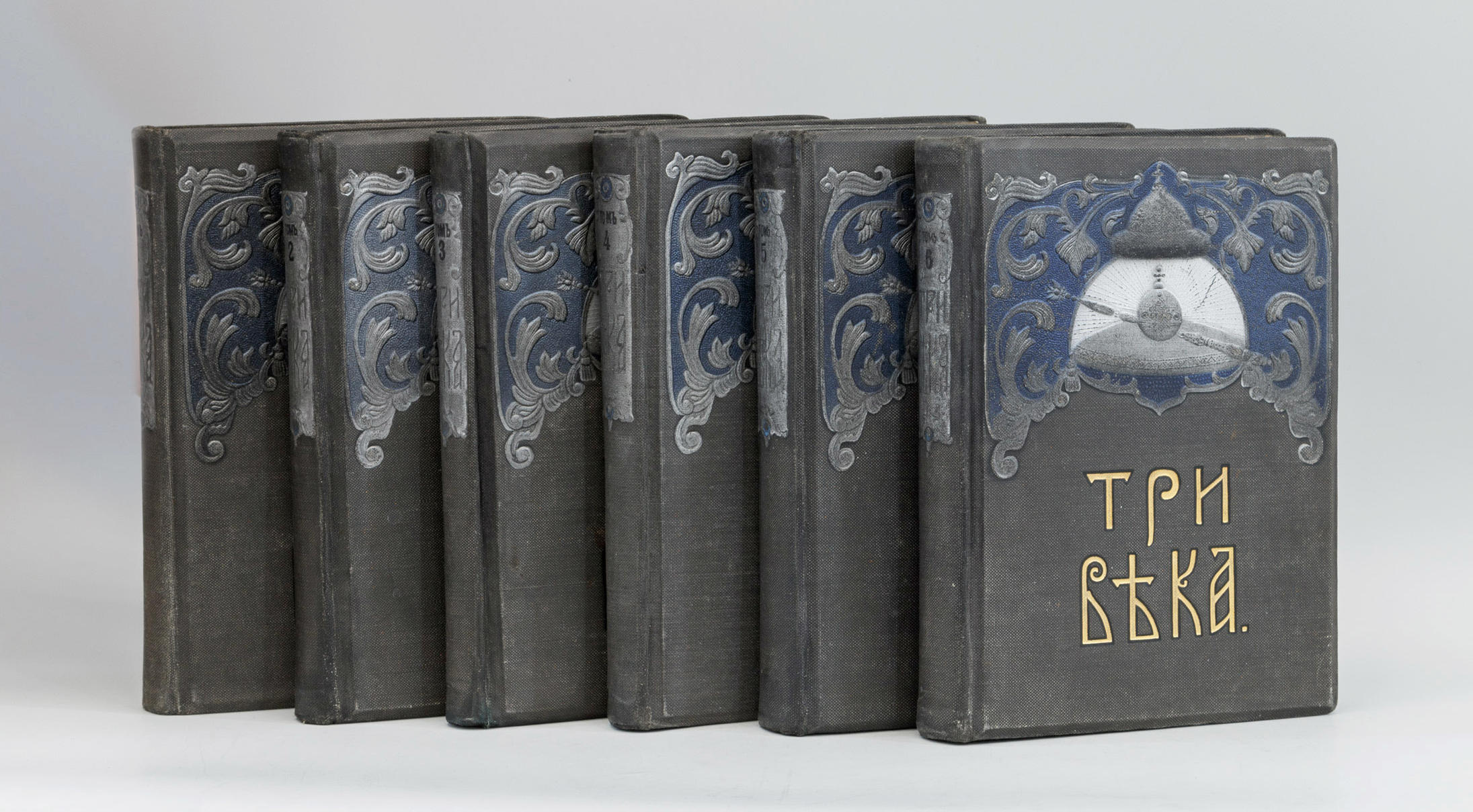 Три века. Россия от Смуты до нашего времени. Исторический сборник / под ред. В.В. Каллаша. В 6-и тт. М.: типогр. Т-ва И.Д. Сытина, 1912-1913 гг. Т.1 XVII век. Первая половина. [4], 259 с., 22 л. ил. Т.2 XVII век. Вторая половина. 271 с., 22 л. ил. Т.3 XVIII век. Первая половина. 239, [4] с., 21 л. ил. Т.4 XVIII век. Вторая половина. 289, [2] с., 28 л. ил. Т.5 XIX век. Первая половина. 296 с., 34 л. ил. Т. 6 320, 8 с. диаграмм, 29 л. ил. В шести издательских коленкоровых переплетах с золотым и серебряным тиснением. Тройные крашеные обрезы. Эстимейт: 170,000 — 200,000 Лот №121 Гоголь, Н.В. Похождения Чичикова или Мертвые души. Т. 1-2. СПб.: Изд. Т-ва А.Ф. Маркс, [1901]. Т.1 - 1 л. фронт., VII, 375 с., ил., 7 л. ил. Т.2 - 377-571 с., ил., 3 л. ил. 36х26,5 см. В двух твердых владельческих коленкоровых переплетах. Эстимейт: 29,000 — 35,000 Лот №138 Москва. Путеводитель. М.: Изд. Т-ва И.Н. Кушнерев и К., 1915. VIII, [4],702, [1], V с., 3 л. карт. 16,3х12 см. В коленкоровом издательском переплете, издательская обложка дублирована на переднюю крышку. Эстимейт: 2,000 — 5,000 Лот №155 История русской литературы XIX в. / Ред. Д.Н. Овсянико-Куликовского. Т.1-5 М.: Мир, 1910-1911. Т.1 – [8] 428 c., 26 л. ил. Т.2 – [8], 431 с., 19 л. ил. Т.3 – 503 с., 19 л. ил. Т.4 – [8], 374 с., 12 л. ил. Т.5 - [8], 580 с., 27 л. ил. 27х18,8 см. В пяти издательских полукожаных переплетах с тиснением золотом. Мягкие издательские обложки под переплетами. Эстимейт: 20,000 — 30,000 Лот №156 Одиссея Гомера. Пер. В.А. Жуковского. Рис. Ф. Преллера. СПб.: Изд. А.Ф. Девриена, [1911]. 1л. фронт., XVI, 311 с., 15 л. ил. 36,5х27 см. В издательском коленкоровом переплете с тиснением и многоцветной печатью. Эстимейт: 73,000 — 90,000