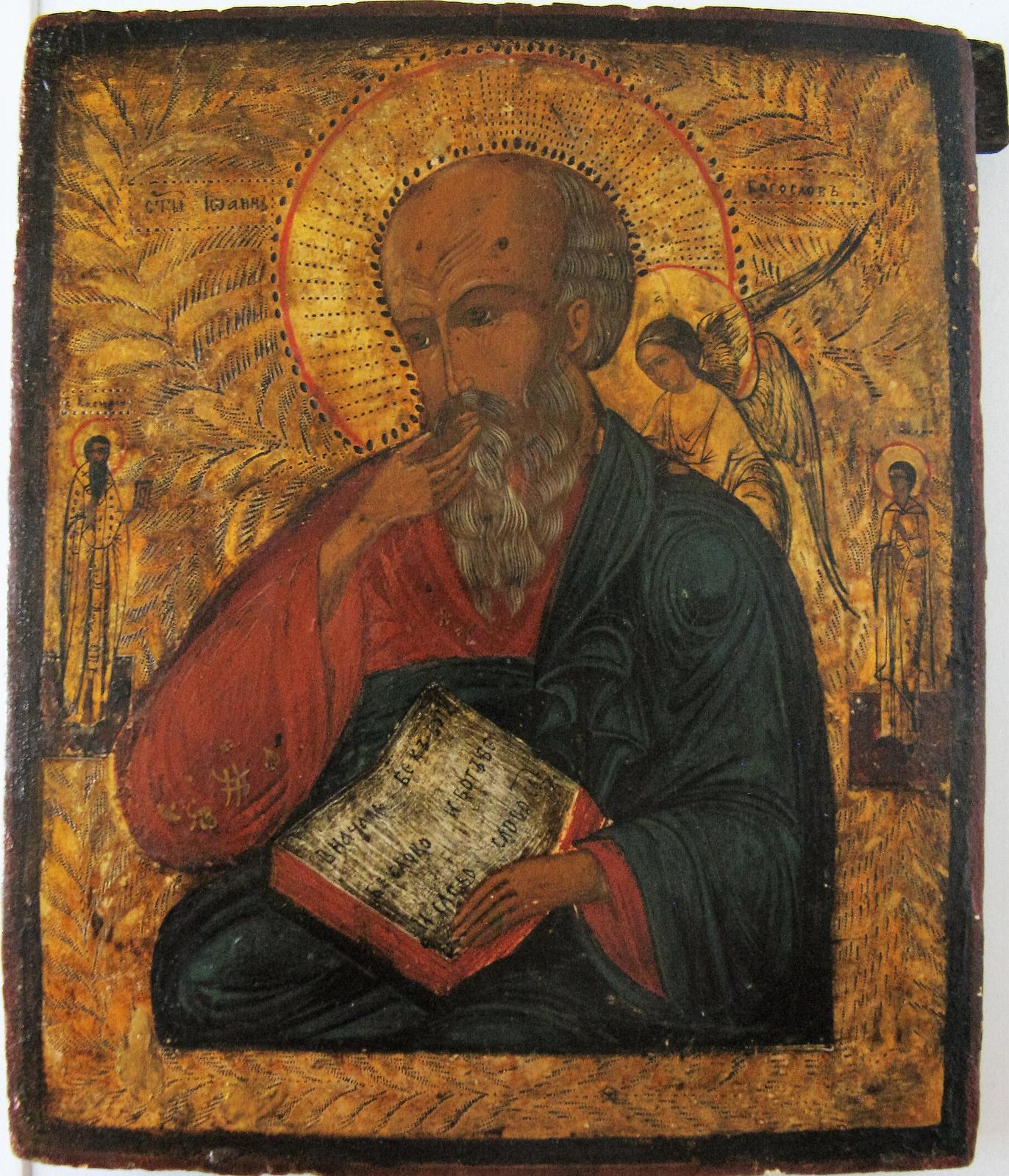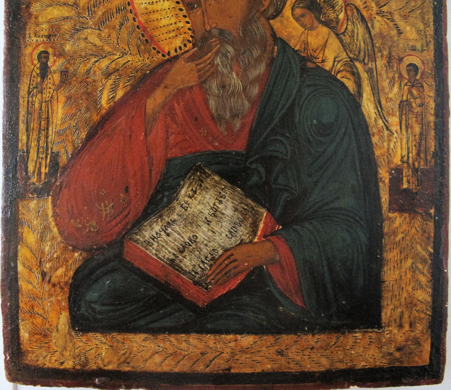 Икона Иоанн Богослов в молчании с приписными Святыми Василий и Митрий?, 19 век Школа- ВЕТКА!!!