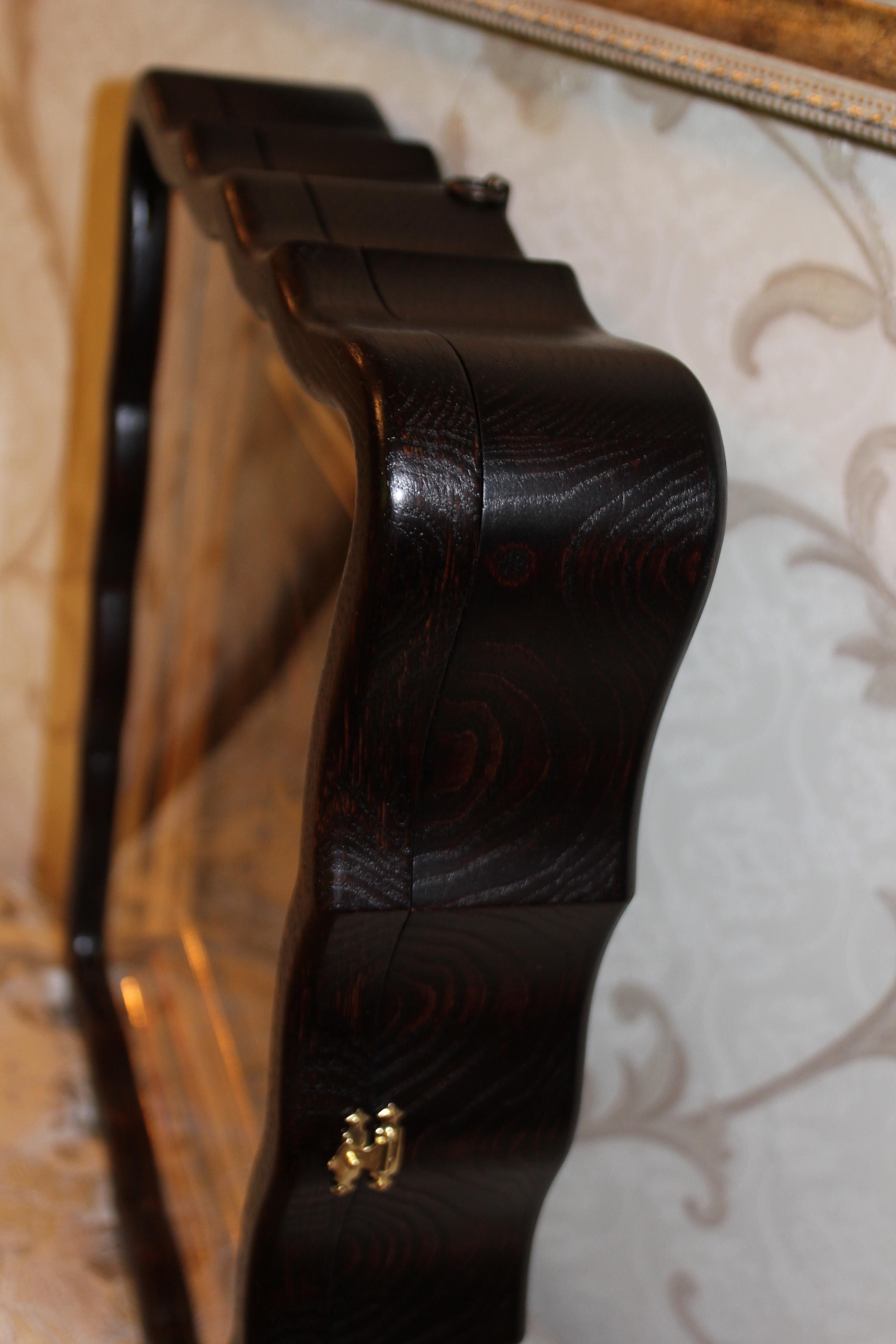 Киот из массива дуба с латунными жилками и латунной рамкой.