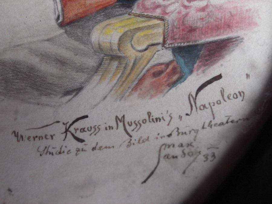 Please help us in identifying the artist. Probably Austrian. Depicted actor Werner Krauss in the role of Napoleon in the eponymous spektakle.1933god. The painting itself was (then) at the National Theater in Vienna. Where to now?