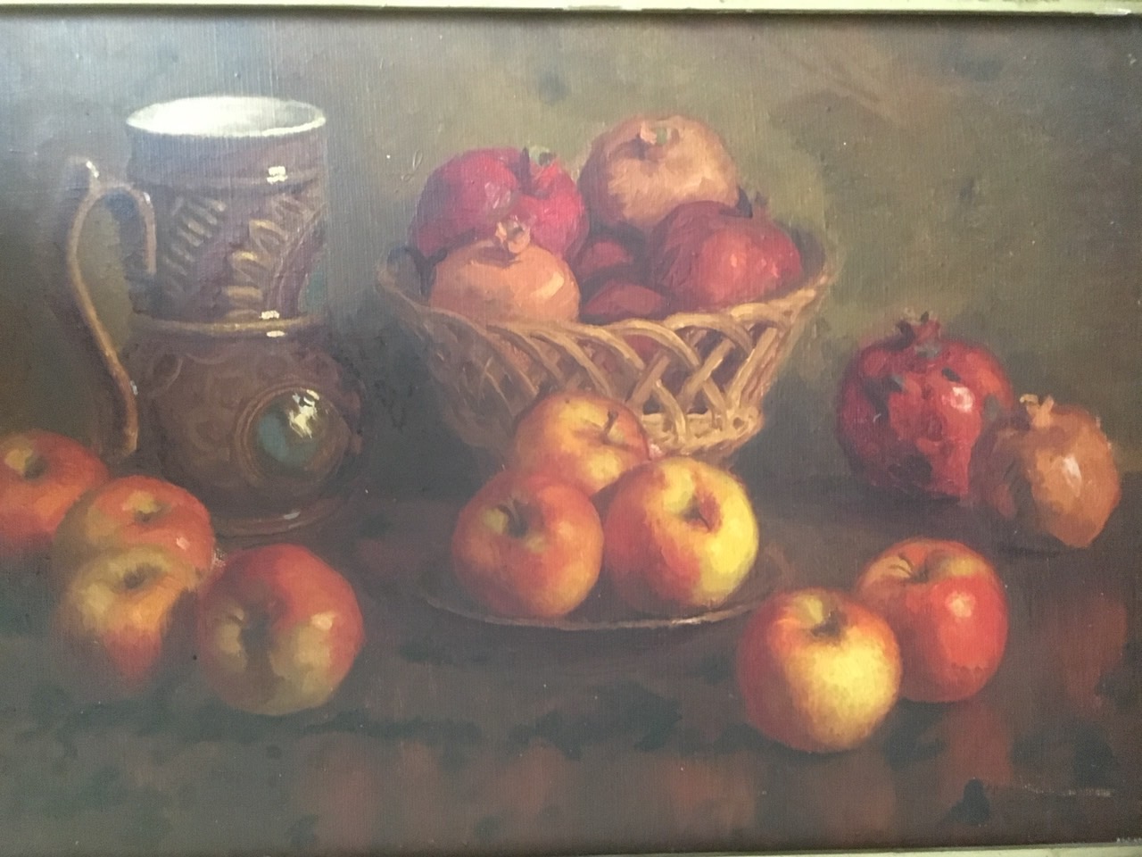 картина натюрморт "Фрукты"- холст, масл,о размеры 40 х 60 см. Время создания 1952 год . Подпись автора на лицевой и на обратной стороне картины.