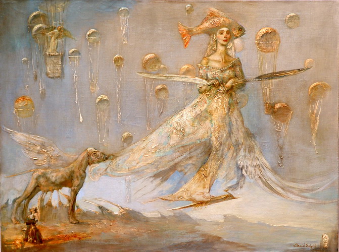 Alexander Dolgikh 1968g.r. He graduated from the Crimean Art College im.Samokisha. For a long time worked in the Crimean Academic Russian Drama Theater named after M. Gorky - (painter-decorator). Work in the gallery "CEP", the general exhibition Crimean artists: Kiev, Donetsk, Simferopol, Madrid, Prague, London. Lives and works in Prage.Dekorativnost - an aesthetic understanding of shape, sometimes making you forget about the utilitarian object. A related principle of aestheticism - the recognition of beauty as a supreme and independent tsennosti.Mifologizatsiya - creating your own ikonosfery. For example, in countless "things" Moderna - in vases, candelabra, ashtrays, inkwell, paperweights and calendars appear seductive figure zhenschiny.Teatralizatsiya, stylization understanding of space, flatness, ornamental, the equivalence of image and background, form, and empty space. Once again, my friends, I present to you this artist!