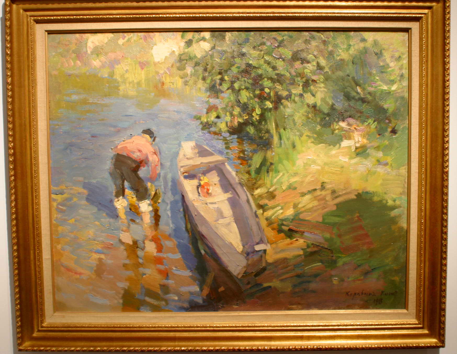 Artworks all as on selection. Just rest the soul. Some directories are already there, quietly lay out estimate. 1. Grigoriev, Pont-Aven. Evening view in 1924 69h73 2. Baranov, Rosina, Road in the campaign. 1911 70h87 3. NS Goncharova, Still life with flowers and fish in 1923 70-x55 4. KA Korovin, the window in 1923 110h76 5. Lagorio, Seaside 1889 72h107 6. Repin, Kazak 1910 96h69 7. Aivazovsky, ships at night 1844. 58h87 8. Among lots of heirlooms of Grand Duchess Maria Pavlovna attracted the attention of lot - pillowcase. I wonder what estimate at this value? 9. Grigoriev, Faces of Russia in 1922 49h55 10. Goncharova, Sunflowers 1920 98h65 |