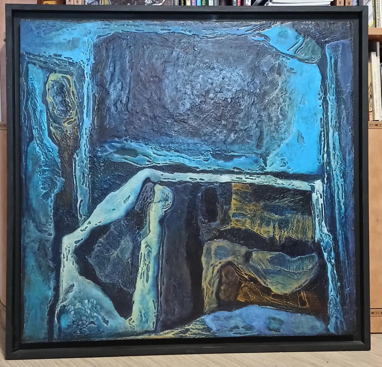 Михайлов Вячеслав Саввич (1945) Интерьер 105Х110 1986г. Оргалит, масло.  Редкая работа периода, когда художник нашел свою уникальную авторскую технику. В прекрасной сохранности! О художнике: Михайлов Вячеслав Саввич 1945 г.р. Родился 3 сентября 1945 года в селе Арзгир Ставропольского края. В 1977 году окончил Санкт-Петербургскую Академию художеств по классу живописи. В 1979 году окончил аспирантуру по мастерской народного художника СССР, академика Е.Е. Моисеенко. Член Союза художников России с 1979 года. Член Национальной Ассоциации художников Италии «ITALART» с 1993 года. Заслуженный художник России с 1999 года. Участник более 300 выставок, в том числе 69персональных, в России и за рубежом. Сегодня Вячеслав Михайлов — один из самых известных петербургских художников. Ему посчастливилось найти свой выразительный язык, делающий работы узнаваемыми и вызывающими неподдельный интерес. В его произведениях смысл и символика вызывают не меньший интерес, нежели художественные средства выразительности. Михайлов смело обращается с формой и материалом, не боится экспериментировать и отклоняться от созданной ранее и признанной зрителем манеры. Велик диапазон сюжетов, к которым обращается мастер: в его галерее образов соседствуют библейские мотивы, жанровые сцены, сложные многофигурные композиции. Работы Вячеслава Михайлова продавались на аукционах: Цюрих 1988 год, Галерея «Koller», Лондон 1989 год «Christie's», Версаль 1989 год, Орхус 1990 год «Nelleman&Thomsen» (Дания), Париж 1990 год, аукционный дом «Drouot», Ницца 1992 год, Галерея «Gioffredo», Нью-Йорк 2006 год «Sotheby's», Лондон 2007 год «Sotheby's», Лондон 2007 год «MacDougall's»,Лондон 2007 год «Sotheby's». Русское изобразительное искусство. Работы художника находятся в Государственной Третьяковской галерее (Москва), Музее современного искусства (Москва), Фонде культуры России (Москва), Государственном Русском музее (Санкт-Петербург), Государственном Эрмитаже (Санкт-Петербург), Всероссийском музее А.С. Пушкина (Санкт-Петербург), Музее Академии художеств. (Санкт-Петербург), Центральном Выставочном зале «Манеж» (Санкт-Петербург), Музее изобразительных искусств республики Татарстан (Казань), Музее в «Schmidt-Haus» Наббург (Германия), Музее Людвига - Кёльн (Германия), «Zimmerly» Art Museum. Нью-Джерси (США), Museum of Soviet Unofficial Art - Нью-Йорк (США), Государственном музее интернационального искусства в Пекине (Китай), Государственном музее искусств в Шанхае (Китай), State Art Gallery - Мандал (Норвегия) в Музее искусств Тампере (Финляндия), Государственном художественном музее «Кадриорг» в Таллине (Эстония).