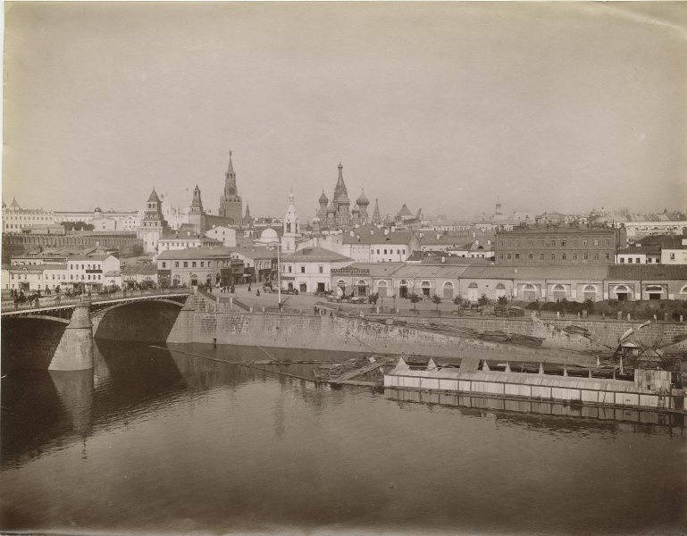 Вид на Кремль и Зарядье со стороны Раушской набережной Дата съемки: 1890-е Неизвестный автор. |