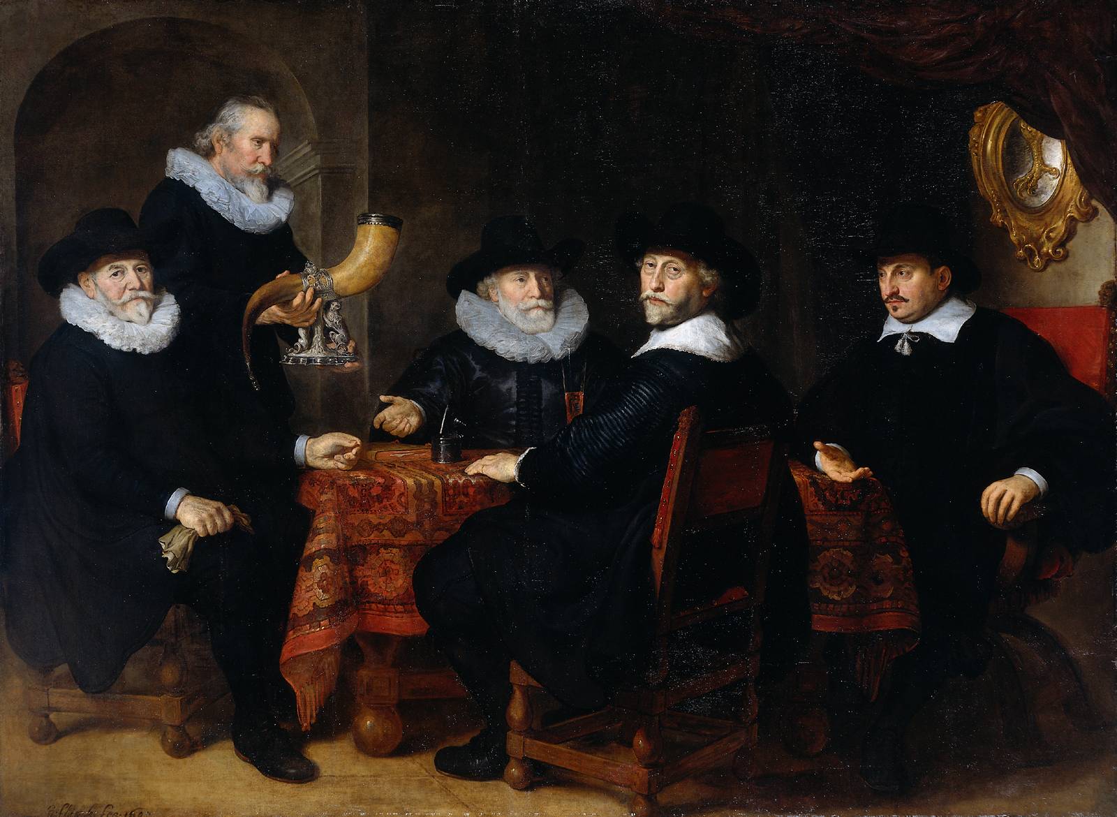 После 1640 влияние Рембрандта ослабевает: большие корпоративные портреты работы Флинка (1642, 1645 и 1648, Амстердам, Гос. музей) очень искусны, но лишены той особой оригинальности, которая присуща, например, портретам работы ван дер Хелста (портрет дворянина и его жены, 1646, Роли, Музей Северной Каролины; <Чета>, Карлсруэ, Кунстхалле). Как исторический живописец, Флинк создал крупные аллегорические картины, исполненные в торжественной барочной манере, столь пленившей поэта Вондела (<Рождение Вильгельма Генриха Брандербургского>, Потсдам, дворец Сан-Суси; <Смерть штадтгальтера Фридриха Генриха Оранского>, 1654, Амстердам, Гос.музей). Но вершиной творчества Флинка стали гигантские картины <Молитва Соломона> (1658) и <Marcus Curius Dentatus> (1656), написанные для новой амстердамской ратуши (ныне - Кор. дворец), где хранятся и сегодня. В 1659 Флинк получает заказ на исполнение 12 исторических картин для амстердамской ратуши (8 больших полотен прославляли борьбу с римлянами, а 4, меньших размеров, - изображали разных героев прошлого). Но в 1660 художник умирает, исполнив только наброски к четырем композициям (одна из них, завершенная Овенсом в 1662, заменит отвергнутую картину Рембрандта <Заговор Клавдия Цивилиса>; другие картины написаны Болом, Ливенсом, Баккером, Иордансом и Рембрандтом).