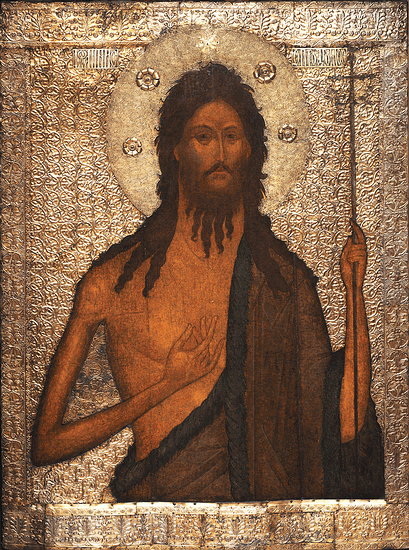 22 Панагиарион. Новгород, 1435 г., Гос. музей Новгорода 23 Вотивный крест. Новгород, 1359 г., Гос. музей Новгорода 24 Деисус и молящиеся Новгородцы. Новгород, вторая пол. XV в., Гос. музей Новгорода Крупные средневековые центры: Тверь, Псков 25 Успение Богородицы. Тверь, XV в., ГТГ 26 Святые мученики. Псков, вторая пол. XIV в., Эрмитаж 27 Св. Дмитрий. Псков, сер. XV в., ГРМ Раздел пятый. Возвышение Москвы (XIV- XV вв.) 28 Св. Петр, митрополит Московский. Новгород, сер. XVI в., Гос. музей Новгорода 29 Эпитафия князя Дмитрия Шемяки. Москва, 1444., Гос. музей Новгорода 30 Св. Иоанн Пертеча. Даниил и Андрей Рублев. Около 1408 г., ГТГ |