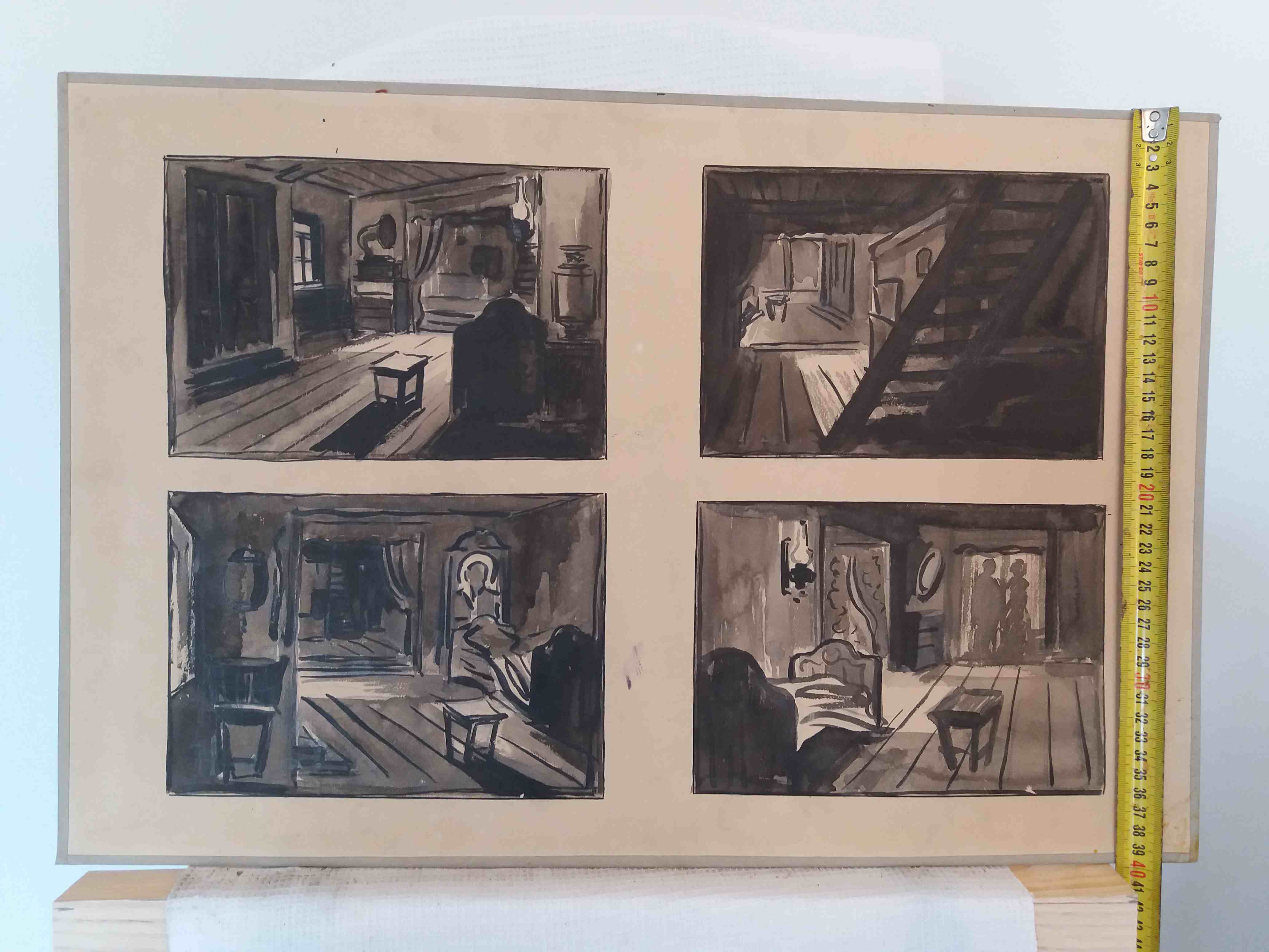 Хотелось бы познакомить уважаемых форумчан с работами этого замечательного художника Советского кино, хотя если не все, то очень многие смотрели фильмы, над которыми работал Александр Васильевич, такие как "Песня табунщика" 1956г. ; "Лавина с гор" 1959 г. ; "Испытательный срок" 1960г. ; "Алёнка" 1962г. ; "Я шагаю по Москве" 1964г. ; киноэпопея "Освобождение" 1970-1972гг. ; "Выбор цели" 1976 и др. А.В Мягков родился 19 мая 1923 года в Москве, участник Великой Отечественной Войны. В 1953 году закончил художественный факультет ВГИКА, ученик Ф.Богородского, Ю.Пименова, Г.Шегаля. В 1972 за оформление киноэпопеи "Освобождение" удостоен "Ленинской премии". Это вкратце. Прошу не судить строго за ошибки в тексте, если таковые имеются и качество фотографий, к сожалению фотоаппарат не передает истинного восприятия эскизов. Хотелось бы начать с первой его работы в кино, совместно с не менее замечательным художником А.И Тиминым. Над фильмом "Песня Табунщика". Последний раз редактировалось Алёша; 11.08.2016 в 22:09. |