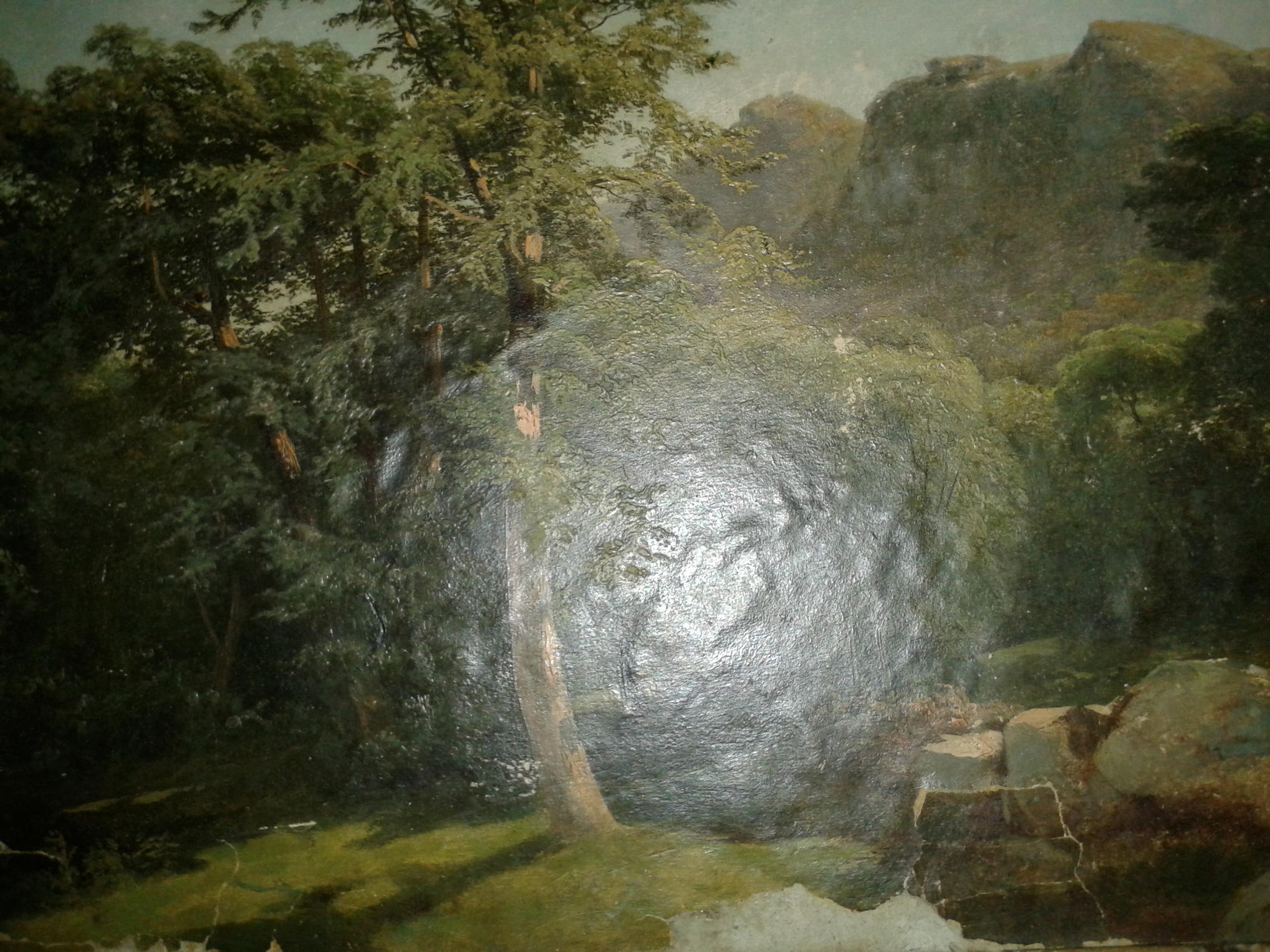 Уважаемые форумчане, подскажите пожалуйста по поводу реставрации. Есть этюд, написанный маслом на бумаге, которая наклеена на картон. Между бумагой и картоном образовалось много маленьких пузырьков(хорошо видны на фото в блике вспышки), также по кромке некоторые части бумаги отсутствуют( к сожалению они утеряны). Возможно ли это устранить и приблизительная стоимость работы? Размер 25*35см. И вообще стоит реставрировать перед продажей или нет? Буду благодарен за любое мнение!