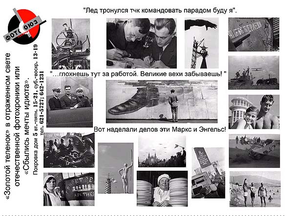 С 11 декабря 2009 по 19 января 2010 в галерее Фотосоюз http://www.photounion.ru/contests/zt/zt.html  (Москва, Покровка, 5) выставка, на которой представлены работы классиков отечественной фотографии: Александра Гринберга, Эммануила Евзерихина, Аркадия Шайхета, Анатолия Егорова, Георгия Липскерова, Марка Маркова-Гринберга, Михаила и Макса Прехнеров, Александра Устинова, Евгения Халдея, Ивана Шагина - "Сбылись мечты идиота" Глохнешь тут за работой. Великие вехи забываешь!.. Настоящая жизнь пролетела мимо, радостно трубя и сверкая лаковыми крыльями… А между тем, этим крылатым фразам из романа «Золотой теленок» уже 80 лет, поскольку известно, что И. Ильф и Е. Петров работали над романом в 1929—1930 годах (тогда он назывался «Великий комбинатор»). Чем не повод к празднику слова и образа. Нескольким поколениям «Золотой теленок» служил своеобразным цитатником, сборником веселых афоризмов на все времена. Кто из нас не грешил «заемным остроумием», цитируя без кавычек целые абзацы из «вечнозеленого» романа?! И хотя многое из этой книги теперь может показаться анахронизмом, а некоторые веселые перлы, страшно сказать, стали неприличными или (кто бы мог подумать) неполиткорректными (как, например, - «Вы не в церкви, вас не обманут»), тем не менее, «Золотой теленок» остается самым любимым и популярным авантюрным романом на русском языке. Лед тронулся, господа присяжные заседатели... Уже 80 лет как тронулся ...