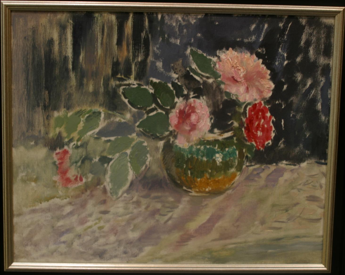 Присутствуют на двух стендах. на одном картины, на другом витражи, причём старинные, очень интересно оформленные, с подсветкой изнутри. - Александр Рудницкий, Нтюрморт с гитарой, 54х65, 1920 - 35 000 Евр. - Сафронова, Натюрморт с астрами, 1960, 44х55, 20 000 Евр. - Витражи не продаются по одному. Только все вместе за 800 000 Евр. |