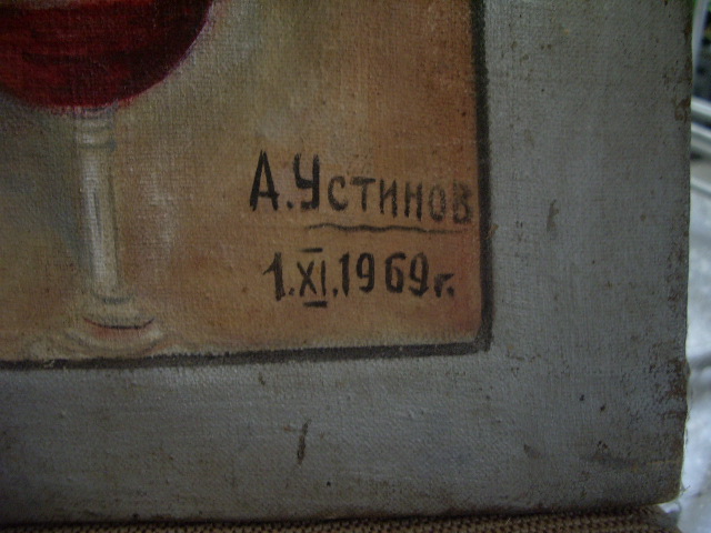 Почистить его слегка, чуть затонировать кое-где, в раму хорошую-люкс будет! Автор мечтал, видимо, о тепле, Юге, фруктах, вине, море, женщинах... Вон, арбуз у него какой-прямо наглядное пособие по психоанализу.