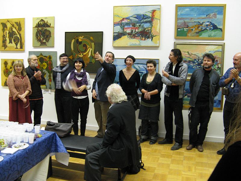 Картины были не только этого года, но и прежних лет, графика, скульптуры из камня и дерева. Из тех художников, что я не знал, понравилась работа Маши Майковой (так подписана). Несколько фото с вернисажа: 1.Художники выставки 2. Маша Майкова. 3. Алина Хазиева, арт-директор "Аиста", В.Курдюков, Е.Старик (слева направо). 4.Работа Люси Вороновой. 5. Работа Маши Майковой. 6. Работа Вл.Курдюкова. 7. Работа Веры Ельницкой. 8. Работа Ел.Старик. 9-10. Работы тоже хороших художников.