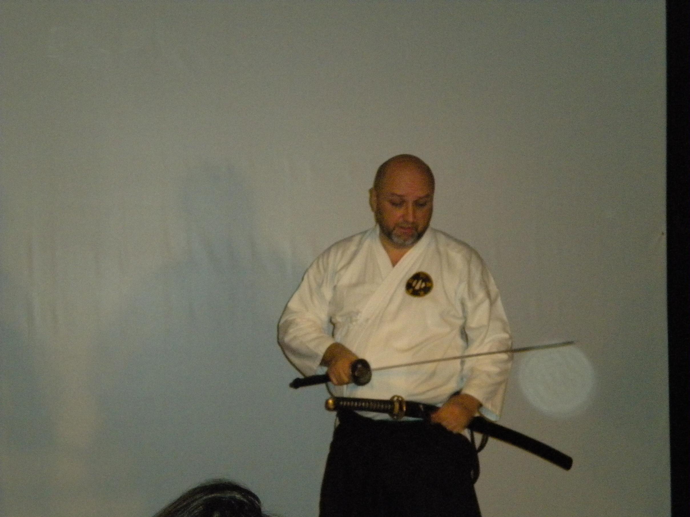 В Москве, по адресу: Ветошный, 13 – за ГУМом, открылась выставка «Самураи: Art of war». Как удачно я сегодня туда попала! Внизу, на первом этаже встречала девушка, любезно объяснявшая, куда надо пройти (прямо, налево до лифта, подняться на шестой этаж, в гардероб и к кассе). И внизу, и на шестом этаже все было задрапировано черной тканью, поэтому в голову сразу пришли мысли о комнате страха. Девушка, продававшая билеты, у всех интересовалась, будет ли фотосъемка (300 рублей). Все мялись и говорили, что нужен только входной. Из гардероба мы попали в темный зал, где показывали стереофильм. Человек двадцать сидели с очками и серьезно смотрели на огромный экран. Было темно как в преисподней, только экспонаты освещались тусклыми лампами. Фотоаппараты щелкали тут и там, никто не выкручивал руки и не напоминал о неоплаченной фотосъемке (зачем в кассе про нее спрашивали?). В стеклянных аквариумах лежали настоящие боевые самурайские мечи. До ужаса страшные экспонаты различных династий в натуральную величину в боевых доспехах располагались в нескольких залах. В одном из залов проводился мастер-класс по боевому искусству. Там же располагалось небольшое кафе, кстати, совсем недорогое, со множеством вкусняшек, и сувенирная лавочка. Я пассивно поучаствовала в мастер-классе, т.е. просто посмотрела. Но некоторые мужчины приняли непосредственное участие – выходили и махали мечом. У тех, кто рубил слишком активно, мастер меч предусмотрительно отбирал. После окончания одного мастер-класса, начался мастер-класс по чайной церемонии. Вела его милейшая японка Самата-сан, певица Большого театра, одиннадцать лет проживающая в Москве (я это выяснила, разговаривая с ней в соседней комнате перед чайной церемонией). Под руководством Самата-сан я пыталась выговорить по-японски название чая, используемого в чайной церемонии – такой бирюзовый порошок – матча, произносится, как нечто среднее между маття и матча, но, видимо, мой славянский язык не приспособлен для японских звуков, поэтому выходило смешно. В чайной церемонии участвовали гости. Им предлагали японские сладости, а потом чай. По этикету, оказывается, пускается по кругу одна чашка чая. У меня дома такая же, только я ем из нее первое. Наши женщины угощались японскими сластями и прихлебывали чаек чисто по-русски, что совершенно неприемлемо по японскому этикету. Сначала сласти, потом – три глотка чая. Сам порошковый чай взбивается венчиком до состояния легкой пенки. Вообще, церемония довольно сложная, и как небо и земля отличается от китайской. В завершении всего я подошла к сувенирной лавочке (или магазинчику – не знаю, как уж назвать), и купила на память расписные хаси, используемые и как предмет женского туалета, и как средство для еды, и как орудие (если придется обороняться) и закладку для книг из какой-то японской бумаги (что-то типа нашей березы). Понравились шкатулочки и подсвечники из вьетнамского мрамора, выпиливаемые вручную и раскрашенные черной и красной тушью, медальоны и нэцке из нефрита. Были там и японские кисти для рисования, веера, чай и чайные принадлежности, книги, куклы, мечи, цуба, мэнуки и фути (так и не поняла предназначения), различные украшения, фонарики… Короче, понравилось мне, понравилось детям. Выставка продлится до конца февраля.