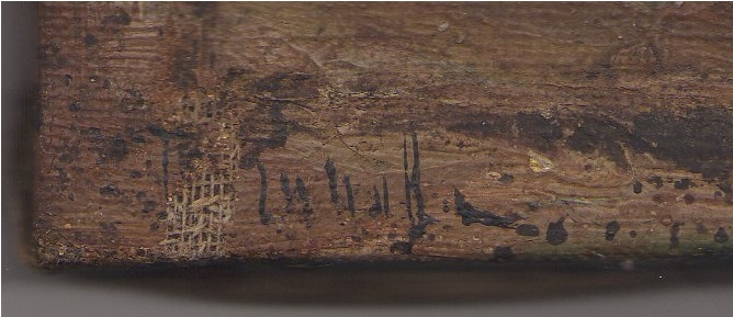 Картина досталась от бабушки. Размер 11 на 29 см Подпись под рамкой кто подскажет автора?