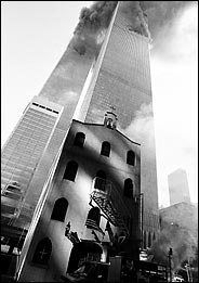Icon of the Mother of God "life-giving source" and St.. Dionysius Zakinfskogo were found in the ruins of the Greek Church of St.. Nicholas, September 11 shattered fragments of the south tower seven years ago.