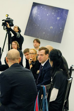 Дмитрий Медведев посетил Мультимедиа арт музей, где осмотрел выставку современного искусства и встретился с деятелями культуры: молодыми писателями, композиторами, театральными и кинорежиссёрами, певцами, художниками. Речь на встрече шла о государственной поддержке развития современного искусства: Цитата: