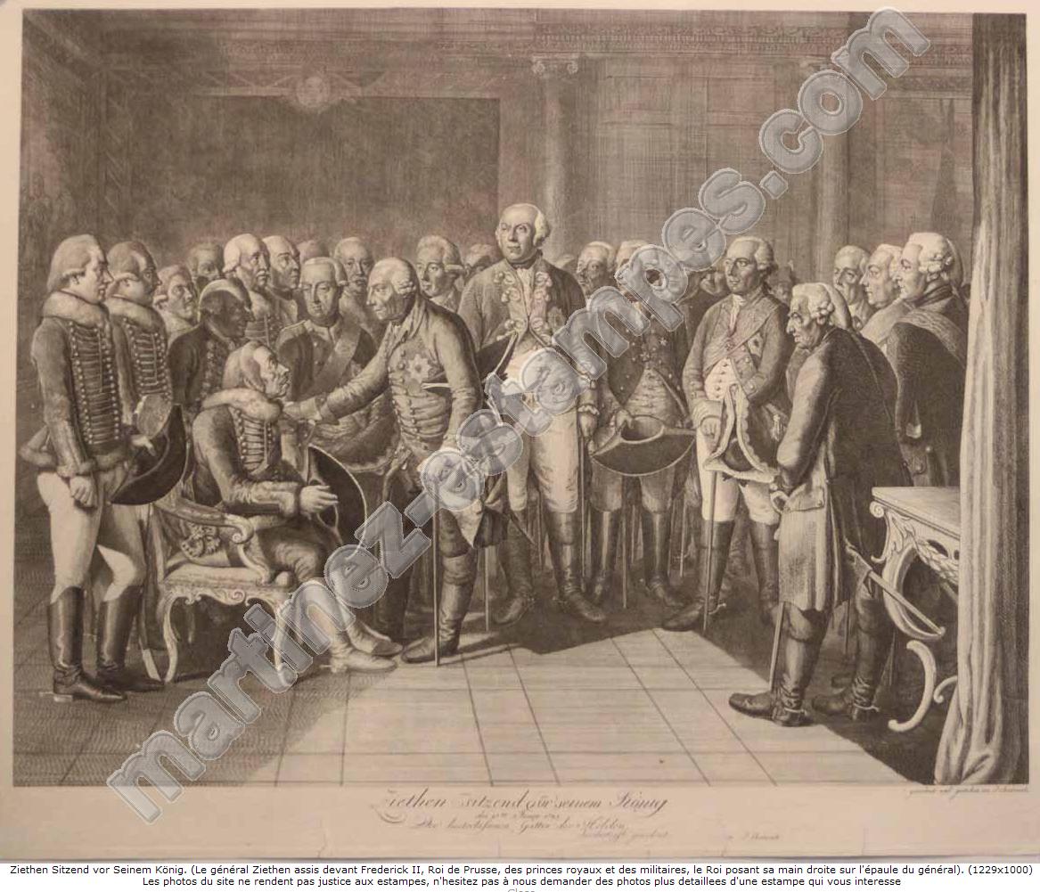 Генерал Цитен, усаженный перед Фредериком II, Королем Пруссии, принцами и солдатами, Король положил правую руку на плечо генерала