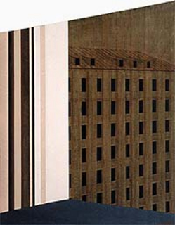 Про творчество А. Волкова 70-80-х годов я немного написала в теме Выставки. В 90-х годах Андрей Волков приходит к своему зрелому стилю: работает крупными формами и в больших форматах (крупномасштабные полотна – это один из признаков «контемпорери арт»). Стилистика становится жестко минималистской: метод художника обладает сжатой формулой выражения, в которой нет ничего лишнего – никакой деталировки, а, напротив, максимальное упрощение и по форме и по цвету. Форме присуща геометризация. Поскольку я люблю такую эстетику, то запомнила живопись Андрея еще с выставки «Пустые комнаты», проходившей в галерее М’ АРС в 2005 году, которая уже демонстрировала его зрелый метод. Прошлым летом была его выставка во дворе Музея личных коллекций ГМИИ им. Пушкина «Город в коробке». Он выставлял под открытым небом большие полотна, изображающие московские высотки на фоне скотчевых инсталляций Александра Константинова. Это был синтез архитектуры, живописи и инталляции. Прикрепляю фотографии некоторых работэтом стиле.
