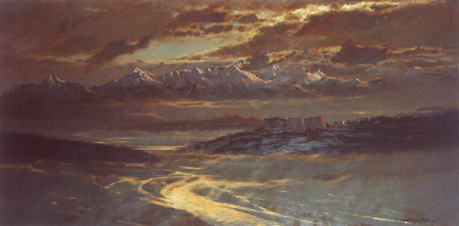 In the local telegraph office (if one can call it as such, more like a village latrine, with one phone number that you have to twist the handle as the "Smolny") we saw pinned to the wall otkserokopirovannye maps, we bought them and use them to continue the path. We have no one interfered, stopping where they wanted and were engaged in their work. Wentz ran with schtativami, and I collect a huge number of onlookers, he wrote quickly bustles, knowing that all come in handy later in the work. Interesting point, after the return gave me a book about Nicholas Roerich and I was surprised that he wrote the same motifs as Nicholas, that sitting on the same field. So slowly through the mountains, abandoned city, which was administered in the evening I was in the mystical horror, we entered the town of Leh, the former capital of Buddhism. There, we settled in a house where there lived a family of believers. An interesting way of life, education and discipline that prevailed in the family, forced to look at life from the other side. That same evening, I asked her to show me a Bathroom, to wash, I was shown the door. The boy quickly dragged into buckets hot water, but when I went there, saw that the ceiling there. Effusions had a hot water under the head paduyuschim snow. When I asked the question - why? I calmly responded that the dirt flies up. I always thought the opposite. Once on the street we saw the child with the balls on the head. He posed as different smileys, before him lay a "cap", that he earned, a business. We threw him a couple of coins. Then something prompted me to ask: "And I gave money to?" The boy immediately dumped into my hands all that he earned for the day. We again asked: "Why?" The boy replied: "You also have to!" We did not know that it is often at Leh in the afternoon, there are dust storms, and one morning went for 10km. on studies of the monastery "Stakmagompa. Interesting monastery, it is very often portrayed in the engravings, I wanted to draw something, take pictures crown, the return trip was nightmare. Sand in the eyes, ears, mouth, cuts across all the hundreds of needles, well the wind was in the back. In Leh we were 4 days. |