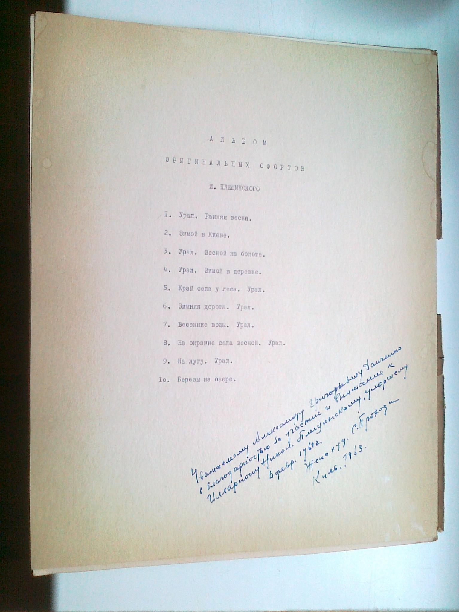 Album copyright etchings in quantity of 10 pieces. With inscription artist's wife, Ukrainian Alexander Danchenko Grigorevichu lithographer . format sheets: 29.5 x 37 cm list of etchings with a dedication text : 29.5 x 37 cm two sheets of embossed paper (folder ) - 29.5 x 37cm 40s 50s of the last century . N. Illarionov Pleshchinskaya (1892 - 1961) graphic artist , teacher Born on April 28 1892goda in Dokshitsi (Belarus) He graduated in 1909 Minsk real school , he entered the Society for the Encouragement of Arts at the St. Petersburg Academy of Arts. Attended workshops Bilibin Rylova , Roerich Member of the First World War. In Kazan Pleschinskii moved in 1919, and immediately entered the Kazan Art Workshops , where he subsequently led workshop lithography , and headed graphics department . Until 1924 , with Nikolai Shikalova published art almanac and folders with author engravings . Graphic organizer famous band " Rider " . Pleschinskii brought to Kazan trends of European prints , primarily German Expressionism . In the mid- 20s he moved to Kiev , where he teaches at the Kiev Art Institute and the Kiev Civil Engineering Institute . Since 1948 - Professor Kievsogo Art Institute . The artist's works exhibited at the national and international exhibitions . Personal exhibitions Pleshchinskaya dated 1924 , 1937, 1964 , 1978 , 1983, 2013 years. His works are in the collections of major museums in Moscow , St. Petersburg, Kazan , Kiev, as well as in private collections around the world. Hilarion died Pleschinskii Nikolaevich February 6, 1961 . Buried in Kiev Baykovoye cemetery . Price ( very reasonable ) can be found in private messages or email. Happy owner - free shipping. Happy New Year , dear comrades !