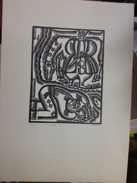 «Украинские народные песни о любви». 1966–1967. Гравюры на дереве. Классика украинской гравюры на дереве ХХ века; удачная попытка сочетать стилистику экспрессионистской графики 1910–1920-х годов с традициями украинского народного искусства. 24 листа из 25 (отсутствует лист «Ой у броду беру воду»). Цикл создан художником в период учебы в Творческих мастерских СХ СССР под руководством М. Г. Дерегуса в качестве иллюстраций к подарочному изданию песен, запланированному киевским издательством «Мистецтво». Стилистика цикла вызвала возражения советских чиновников от культуры, обвинивших художника в формализме, издание книги было задержано и после длительных мытарств разрешено только в 1971 году (Українські народні пісні про кохання / упоряд. Ю. Білякова, М. Кагарлицький ; іл. В. Перевальський. Київ : Мистецтво, 1971). Несмотря на то, что в издании авторский замысел был искажен, оно стало событием украинской художественной жизни и, по выражению украинского живописца В. Задорожного, «настольной книгой» украинских графиков. После переиздания книги в 1986 году художник выполнил ряд аналогичных издательских заказов, а его манера оформления сборников народных песен превратилась в национальный художественный бренд. Оттиски выполнены на бумаге или целлулоиде и наклеены на картонные паспарту. Размеры 15,7 х 12 (изображение), 30,5 х 21,1 (паспарту). Все работы озаглавлены, а большинство (22 из 24) и подписаны автором на паспарту. Продаются вместе, находятся в Киеве. Дополнительные фото по требованию. Жду предложений по цене. |