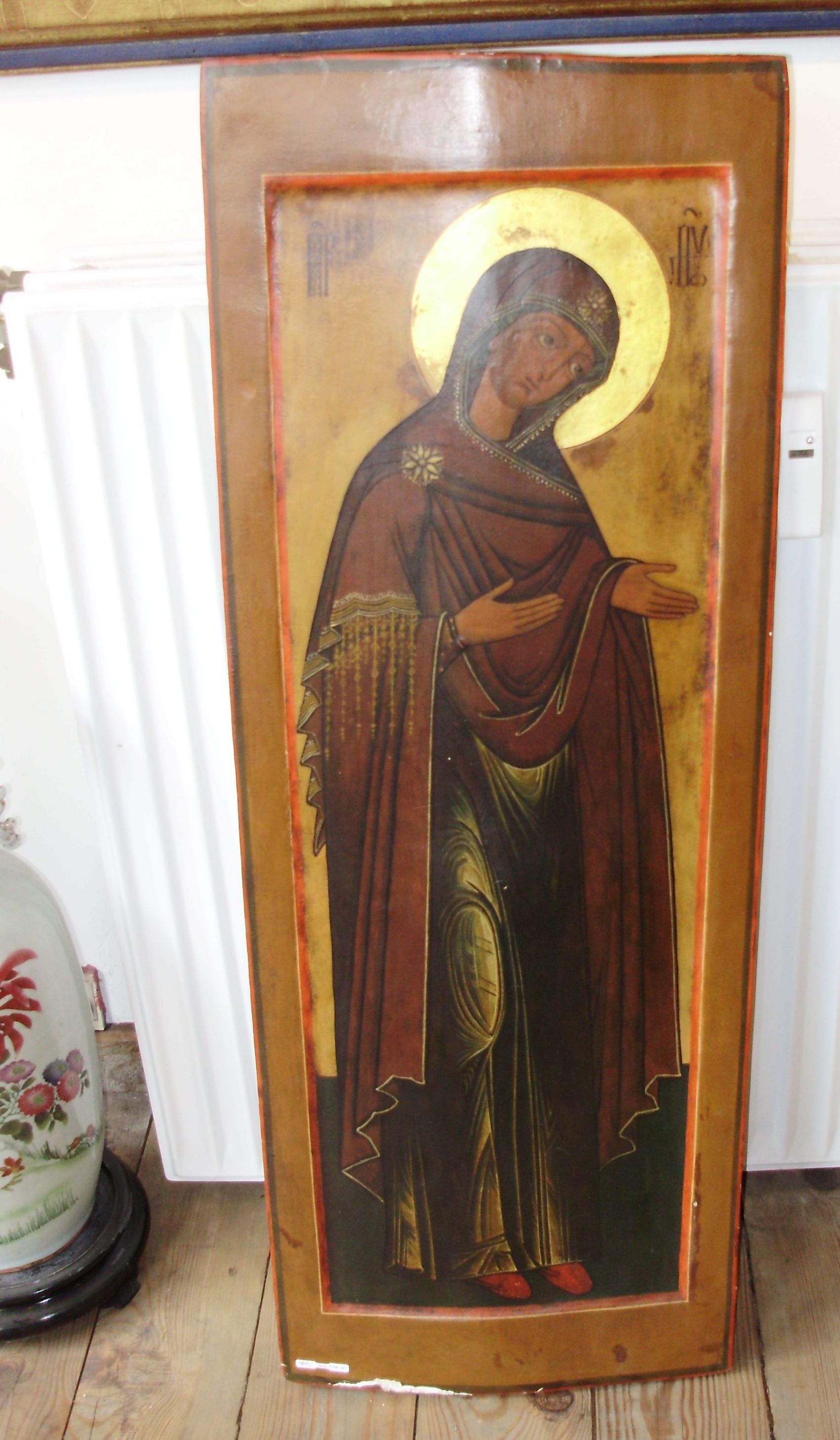 Помогите пожалуйста оценить икону. Размер 113Х41х5см Предположительно 18 век. Благодарю. |