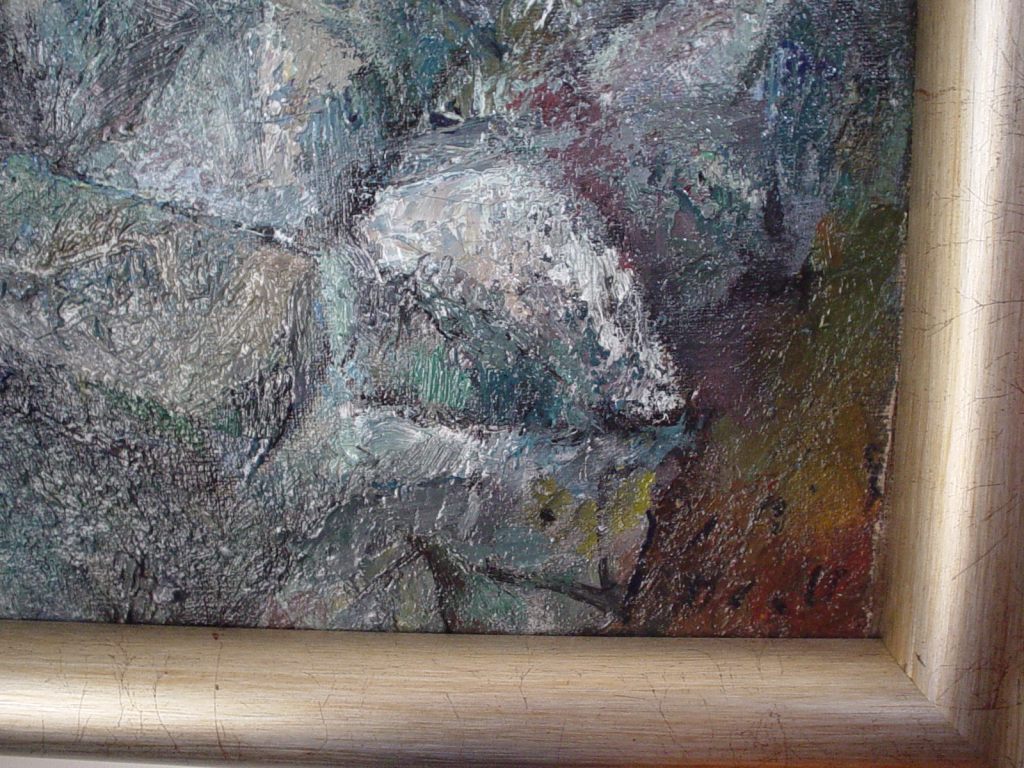 Позволю себе на еще одну тему. 15 лет тому назад мой муж в Киеве купил у какой-то алкоголички-на Подоле в страшном состоянии 15 картин. Почти плакал когда принес-поломанные подраменники, некоторые были много лет на балконе, на некоторых лежали кирпичи и плитка. В общем целый год их приводили в порядок. Висели и как то руки не доходили до них-все они не подписанные. Бабы этой наверное уже нет. но муж говорил что через кого-то из круга художников вышел на нее. В общем не знаю, возможна ли атрибутика и оценка и стоит ли этим занятся. Мое личное мнение- рисовал профессионал уверенной рукой. Но на мое мнение влияет сентиментальное отношение к картине. 1. 90x70 холст масло, фактурная. Года 50-ые а может и раньше Есть какой-то знак в правом нижнем углу-но не могу расчитать-какие-то черточки Специалист по приему в Кристи сказала мне (она не видела даже фото) что невозмо продать такую вещь и оценить тоже. И вообще кто-нибудь ориентируется каковы цены на авангард неподписанный? Где нибудь на аукционах было что-нибудь подобное? |