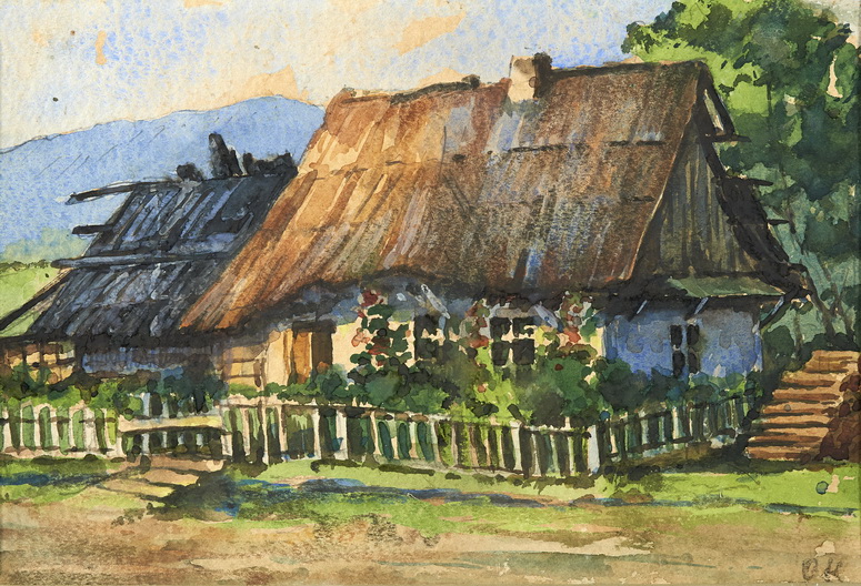 акварель, смешанная техника Гуцульская хата в правом нижнем углу монограмма: ОК на обороте подпись: Кульчицька первая половина ХХ века 16 х 24см картон двойное паспарту размер с рамой: 29 х 49 см Украинский живописец, график. Начальное художественное образование получила в частных художественных студиях Львова (1901-1903). Позже окончила Венскую художественно-промышленную школу (1908). На формирование оригинального стиля художницы большое влияние имели западное народное искусство, которое она изучала всю жизнь; французский импрессионизм и различные направления венского сецессиона, особенно экспрессионизм. Преподаватель Украинского полиграфического института (1945-1951), его профессор (с 1948). Народный художник (с 1956). Графические произведения мастера экспонировались в Кракове, Варшаве, а также на всеукраинских выставках 1911 и 1913 в Киеве. Результатом увлечения художницы народным искусством стали серии акварелей «Народная архитектура западных областей Украины», «Народная одежда западных областей Украины» (20-е годы), иллюстрации к произведениям М. Коцюбинского, И. Франко и др. Цена более чем умеренна. Обращаться в личку или на почту. Работа находится в Киеве.