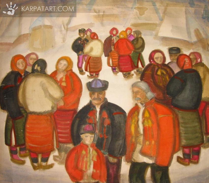 " На Гуцульщине". 1972 г. 82 х 97 см. Бумага, акварель. http://karpatart.com/ru/works/view/3...ini6-1972.html |