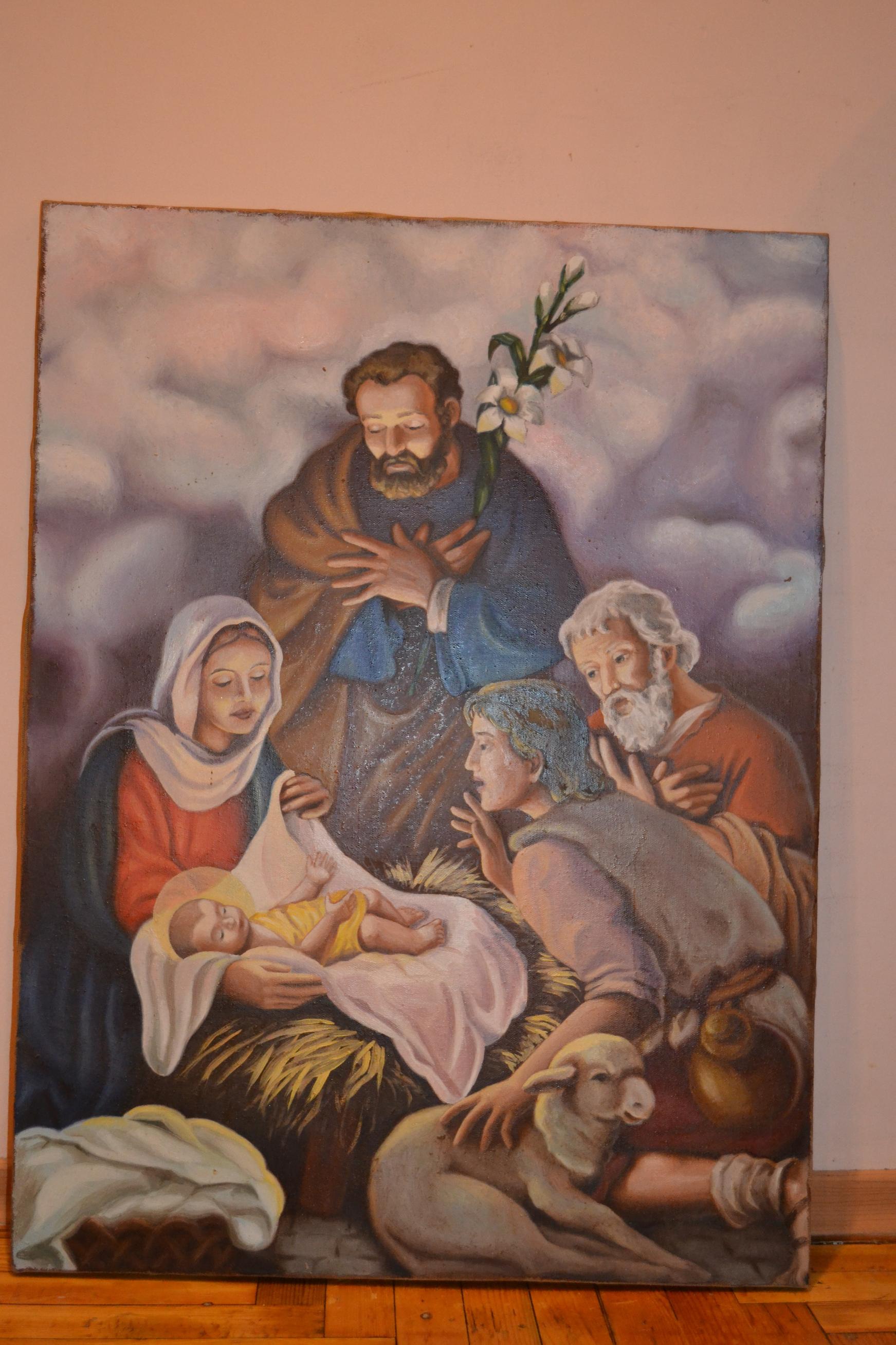 Помогите с оценкой для продажи: Картина "Иисус с пастухами". Написана во Львове, в послевоенные годы церковным иконописцем. (авторство неизвестно) Материал: холст. Размер: 60х80. Состояние на фото. Заранее благодарен! |