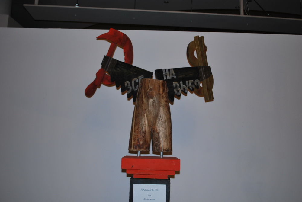 В "Ударнике" на первом этаже проходит выставка Александра Соколова (1941-2009) - скульптора, восьмидесятника, однокурсника Бориса Орлова и Леонида Сокова. По общей гротескности и острой реакции на политический момент отдельные представленные работы созвучны с поздним соц-артом, но говорят, что сам скульптор таких параллелей не одобрял. На небольшой выставке из собрания Шалвы Бреуса представлены работы 1990-х и 2000-х годов - диалоги с великими скульпторами, произведения библейского цикла и др. объекты.