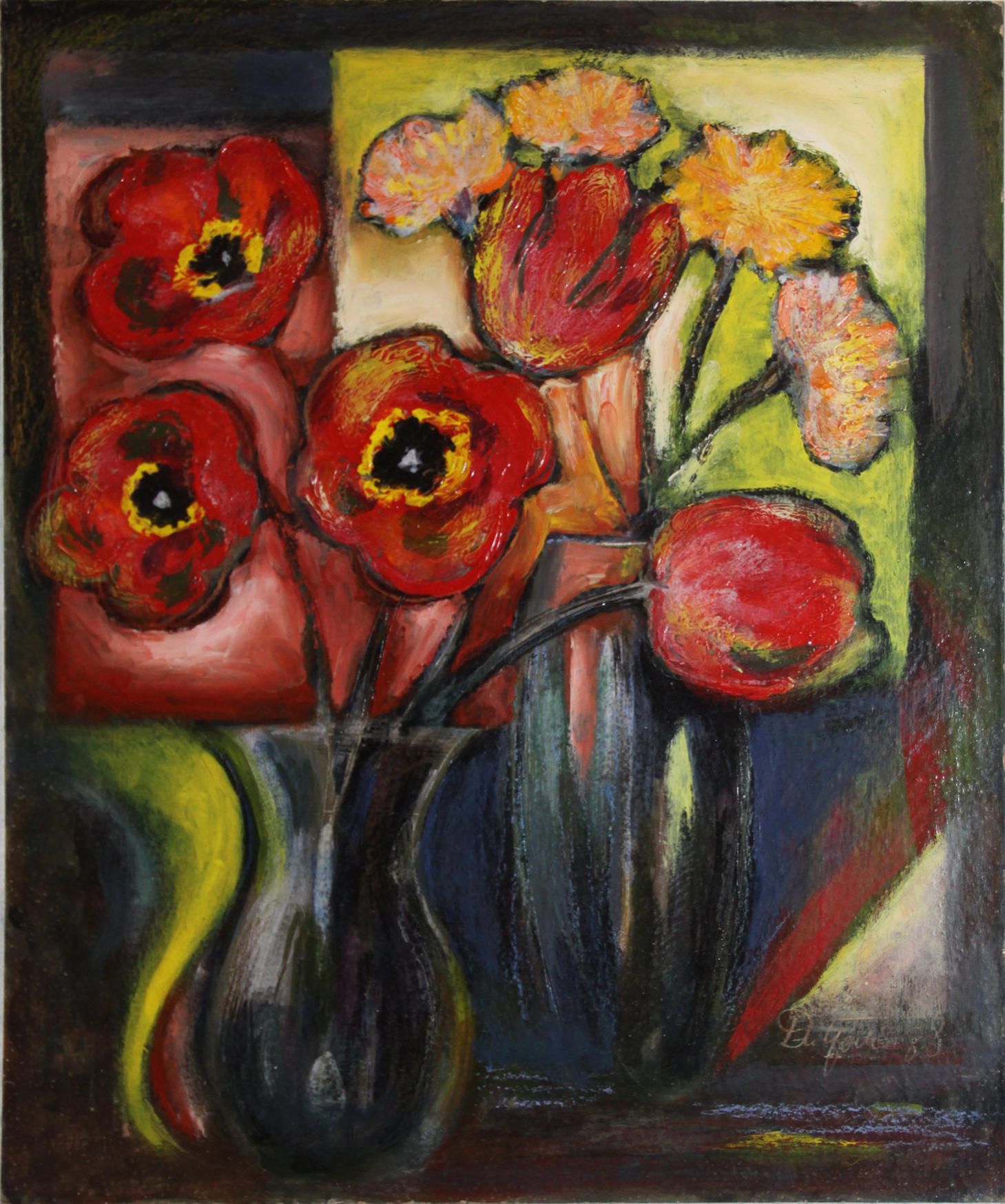 D.Groman " Vase with Flowers" in 1988 , cardboard /oil, size 50x40 cm , Price 20,000 rubles