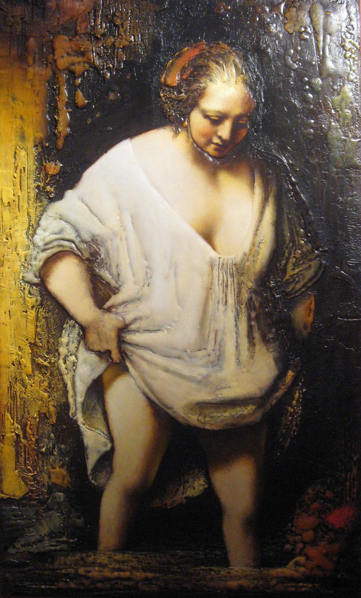 Продам работу Вячеслава Михайлова "Переходящяя через ручей" 2009г. Размер 120х90. Работа оформлена.