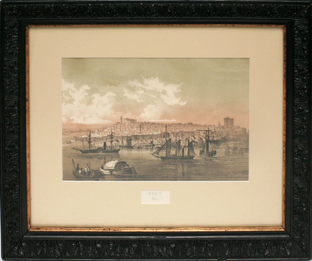 Баку. Тоновая литография в раме под стеклом. СПб Императорское Русское Археологическое Общество 1895г.