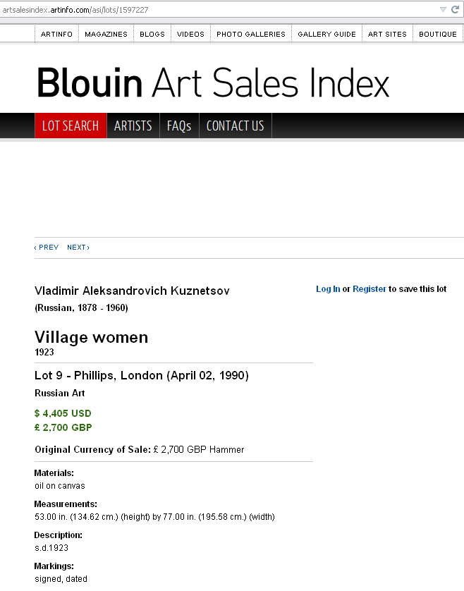 "Без учета имени" оценка не интересна, автор темы просит оценить именно работу В. А. Кузнецова, а его портреты на аукционах покупали по $2000 - $4000, не говоря уж про покупку жанровой вещи за $100 000. Artoil-A, не лезли бы в профильные темы со своей "кистевой игрой". Я понимаю, что Вы местный "городской сумасшедший", но ведь эти Ваши ужимки и смешки и надоели уже, и даже опротивели. |