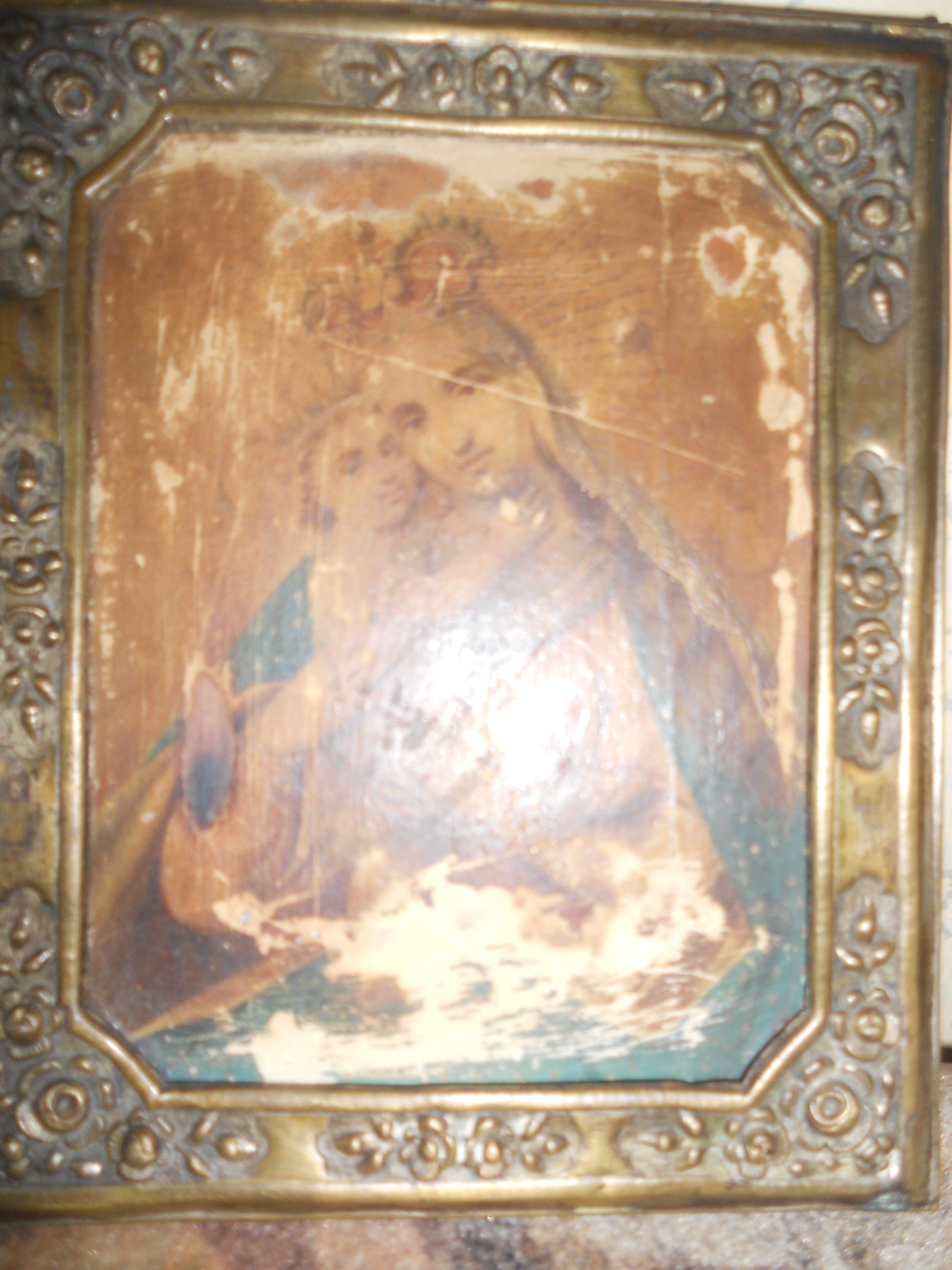 Икона Богоматери, иконографический тип "Умиление" кон. 19 - нач. 20 века, рамка латунная, сама икона возможно отпечатана в типографии..