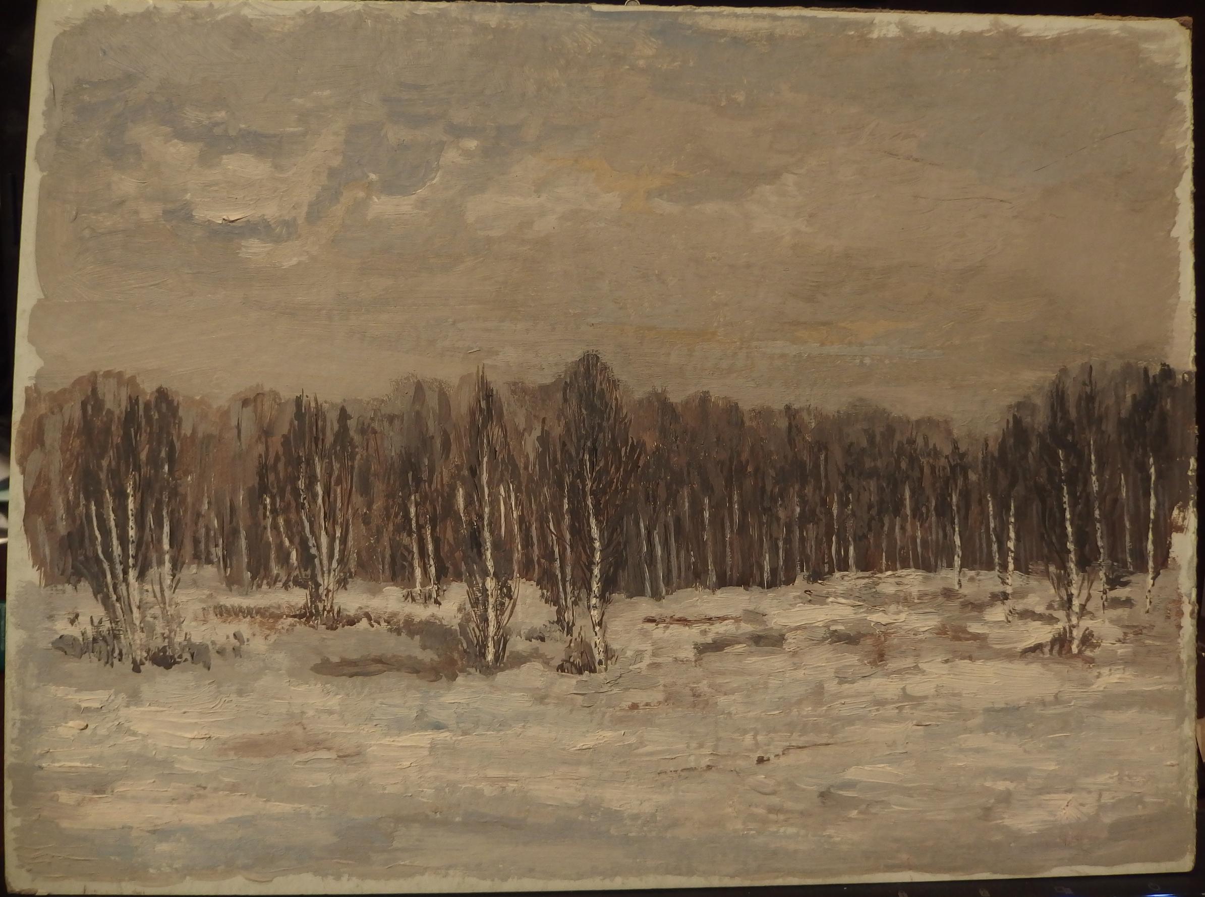 Прошу высказаться по небольшой работе неизвестного художника. Какова на ваш взгляд художественная ценность данной работы. Картон (похоже старый, толщиной 3 мм), масло. В ультрафиолетовом свете не флуоресцирует. Размер 26х35. В правом нижнем углу, возможно, затертая подпись (надпись) красным цветом. Благодарю за внимание. |