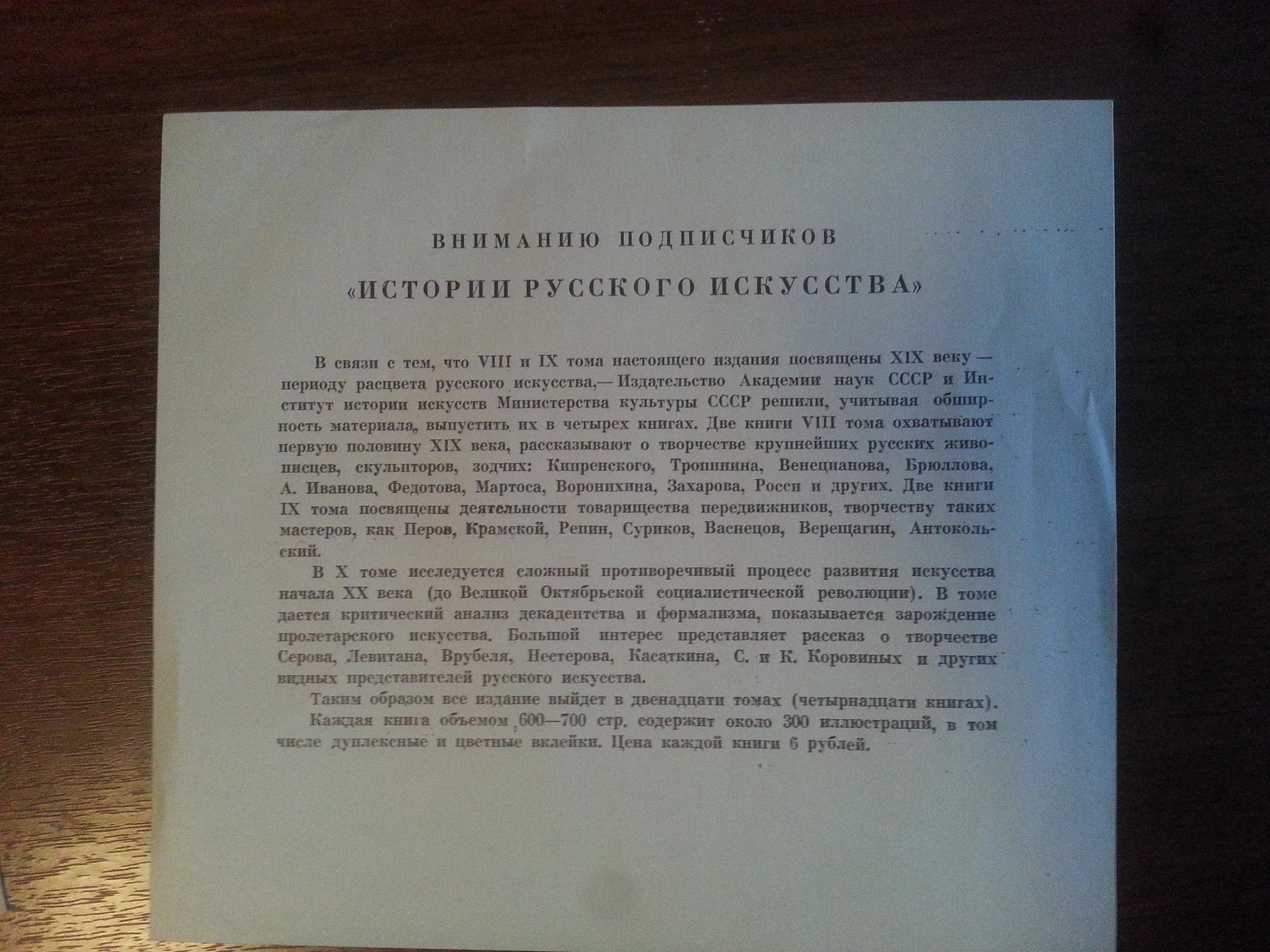 Издательские переплеты, суперобложки сохранены, но потрепаны (местами надорваны+временные пятна). Сами книги в идеальном состоянии. ВНИМАНИЕ! Книга 16 (том XIII, дополнительный) ОТСУТСТВУЕТ! В связи с этим снижаю цену на комплект до 30 000р. Дополнительно отдам книжную карточку тех годов с надписью "Новинка" и информационную карточку для подписчиков "Истории русского искусства". Только самовывоз - Москва, м.Текстильщики. Последний раз редактировалось Reesha; 19.12.2014 в 12:46. |