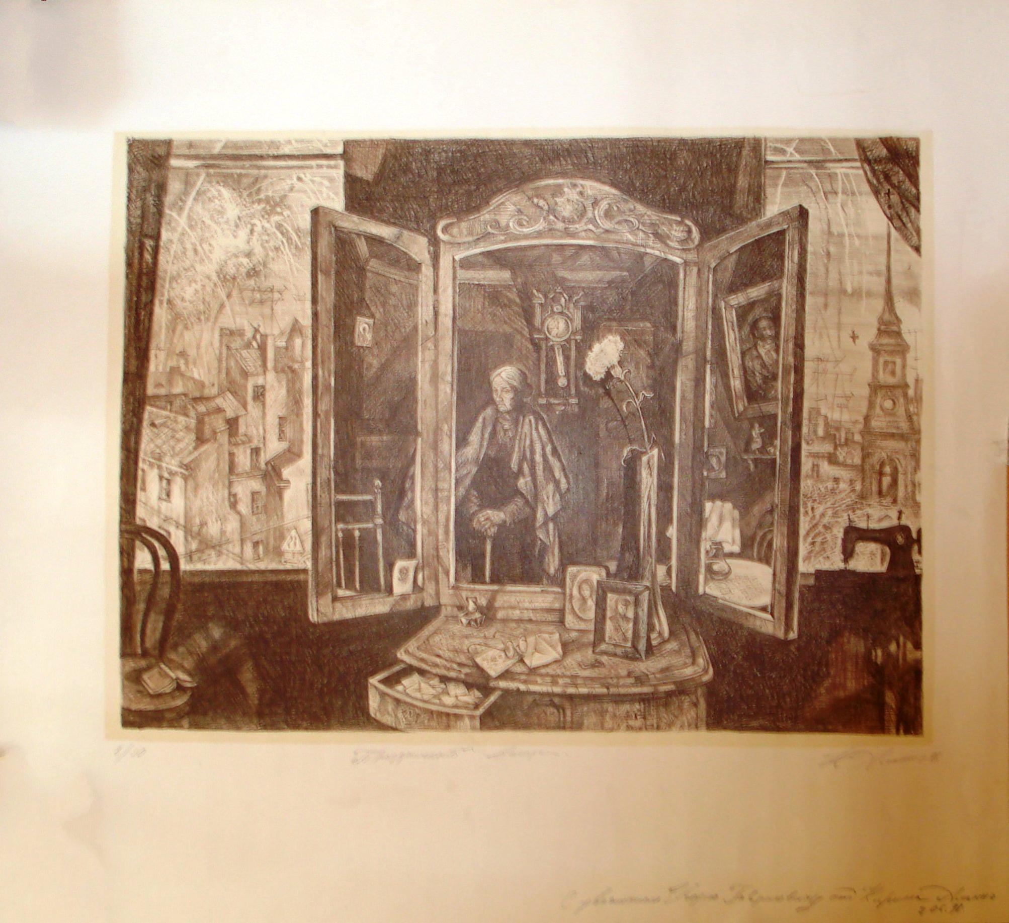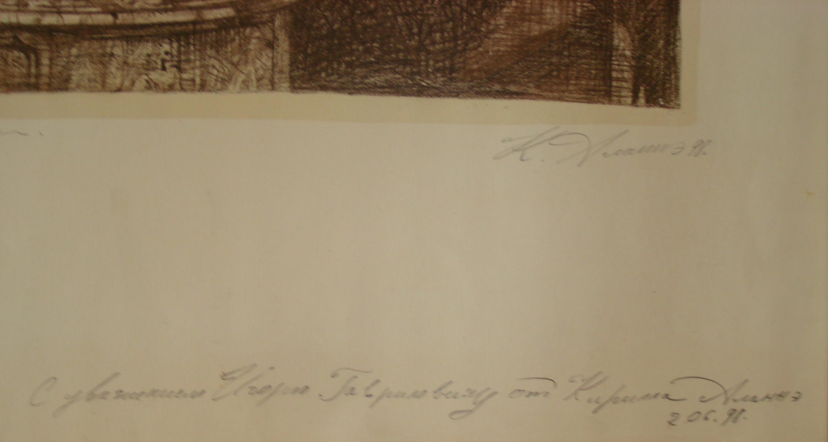 Аланнэ Кирилл. «Праздничный вечер». Ор.8/10. Литография. Россия, 1998. 53х39 см (оттиск), 70х61 см (лист). Внизу слева подпись: «К. Аланнэ 1998» и дарственная надпись: «С уважением Игорю Гавриловичу от Кирилла Аланнэ / 2. 06.98». Хорошая сохранность. Кирилл Аланнэ (р. 1974 г.), художник, член Союза художников (1999 г.). Его работы находятся в частных коллекциях России, Германии, Италии, Израиля, США, Финляндии, Франции.