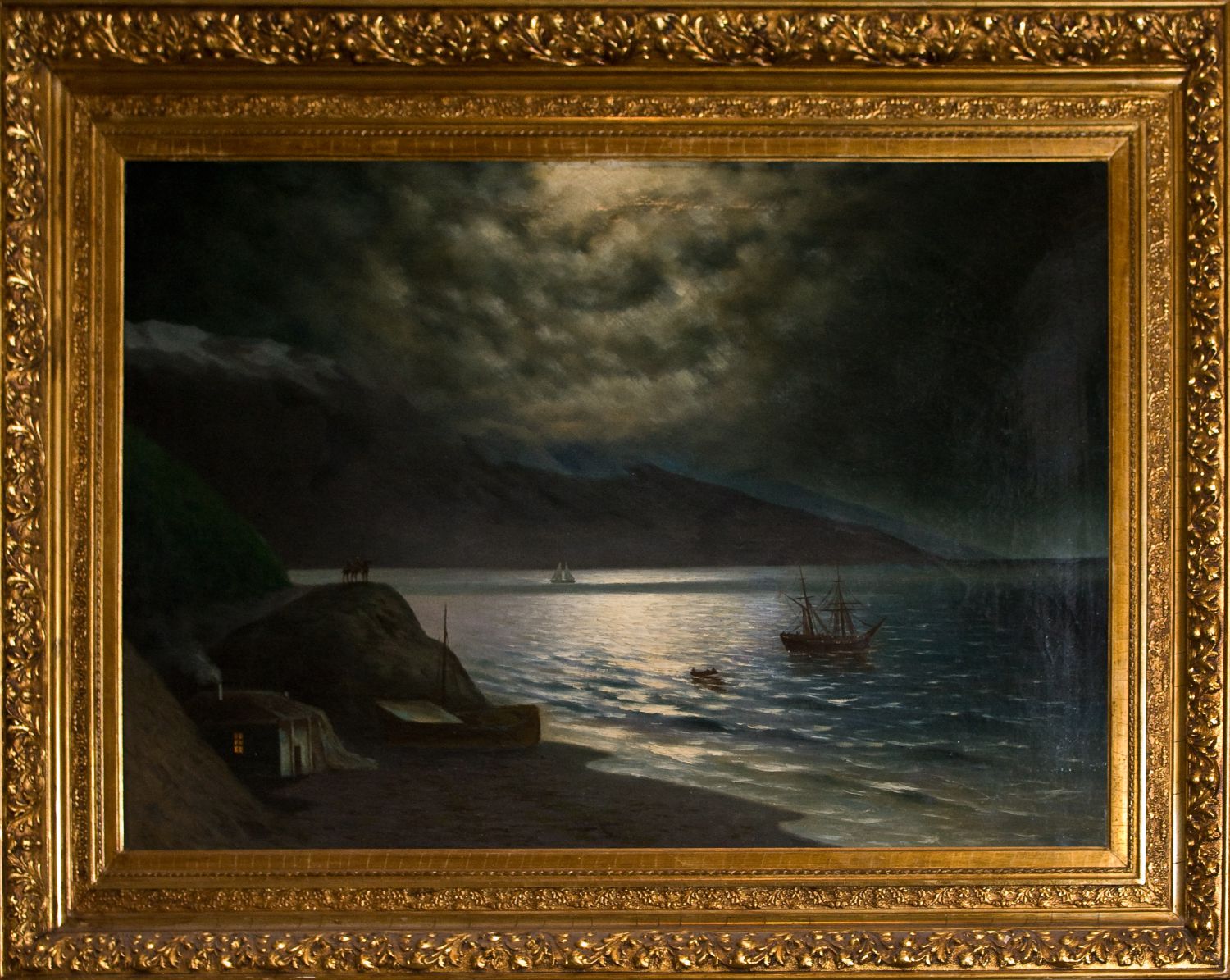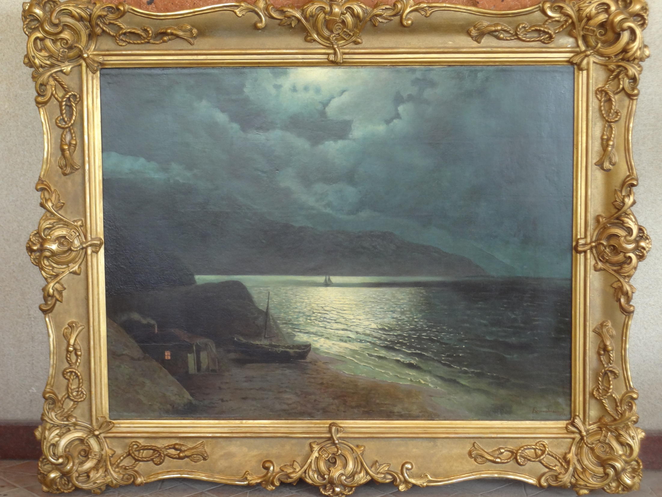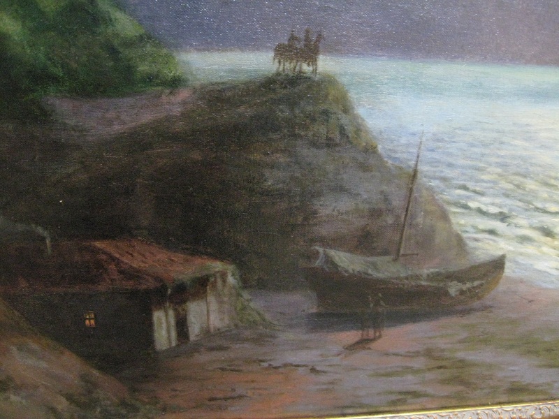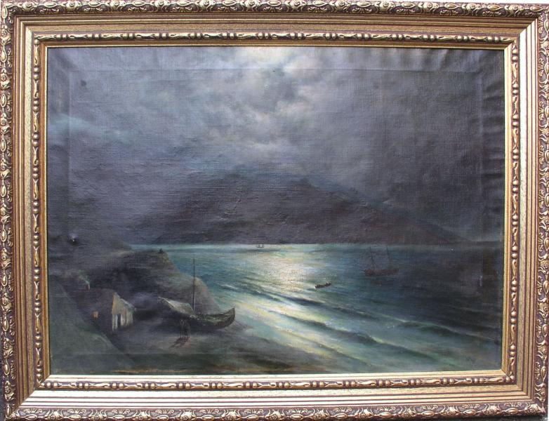 Показанная Вами картина является копией с работы И.Айвазовского "Лунная ночь на берегу Черного моря". Это её первоначальное название, встречающееся в дореволюционных источниках. В моем архиве есть открытка, выпущенная до 1917 года, с репродукцией этого полотна (см.вложение). В 2010 году данное полотно Айвазовского проходило через "28-й Российский антикварный салон" под укороченным названием "Лунная ночь" (72,5х102,5) 1887г. Видимо эта работа, навевающая романтические настроения, не давала покоя художникам - её часто копировали как известные, так и малоизвестные живописцы. Копии этой картины великого мариниста встречаются у Калмыкова Григория Одисеевича, бравшего уроки у Айвазовского, у Капустина Григория Ивановича. Есть большое количество попыток выдать копии с этого пейзажа за подлинные работы Айвазовского. Копии настолько интерпретируются, что скорее, это уже не копии, а картины, написанные по мотивам Айвазовского: кто-то добавляет пару человеских фигурок на переднем плане, кто-то убирает фигуры всадников на скале. В Вашем случае нет лодки. Известно, что идея, принадлежавшая И.К.Айвазовскому, получила множество повторов с добавлениями либо сокращениями по вкусу копиистов. Последний раз редактировалось Николай Левенко; 05.11.2011 в 14:57. |