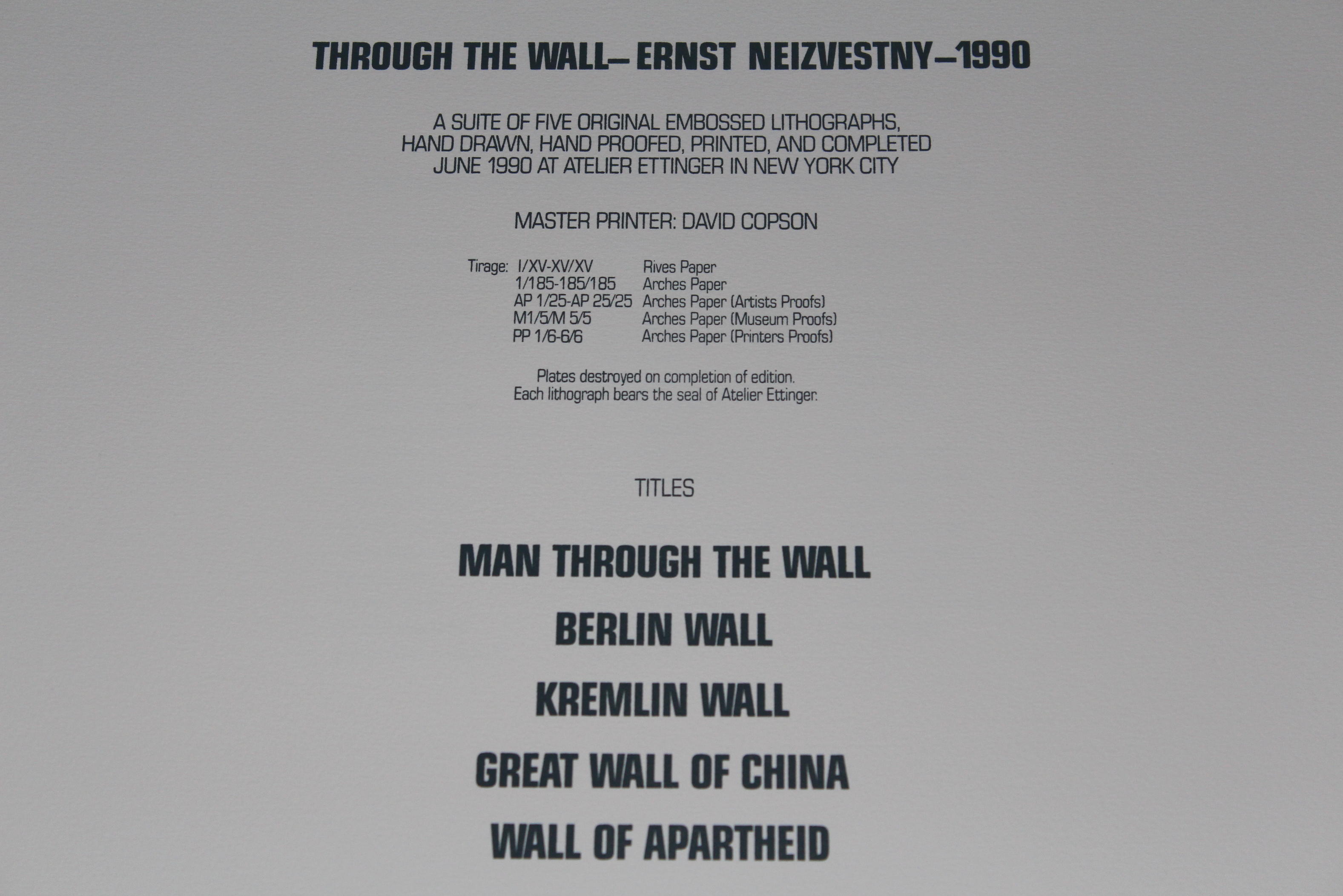 Советский график и скульптор Участник Великой Отечественной войны. Родился: 9 апреля 1925 г. (91 год), Екатеринбург, РСФСР, СССР Родители: Белла Абрамовна Дижур, Иосиф Моисеевич Неизвестный Полный портфолио. RAR !!! Уникально "BAT". Пять литографии «Преодолённых стен» 1990 года : «Сквозь стену», «Великая Китайская стена», «Берлинская стена», «Стена апартеида», «Кремлёвская стена». Мотив стены – как физической, политической, мировоззренческой преграды – позволяет адекватно описать состояние, в которое были погружены советские интеллектуалы-нонконформисты. По словам искусствоведов, сегодня практически все самые известные, востребованные, дорогие российские авторы – это именно эмигранты третьей волны, захлестнувшей Союз в 1970-е – 1980-е годы. Успешная карьера заграницей позволила им «прорваться сквозь стену», обратиться к своему заинтересованному, понимающему зрителю и, в итоге, стать настоящими классиками современного российского искусства . Размер 76 x 56 см Цена на предлагаемые мной работы 500000 рублей. |