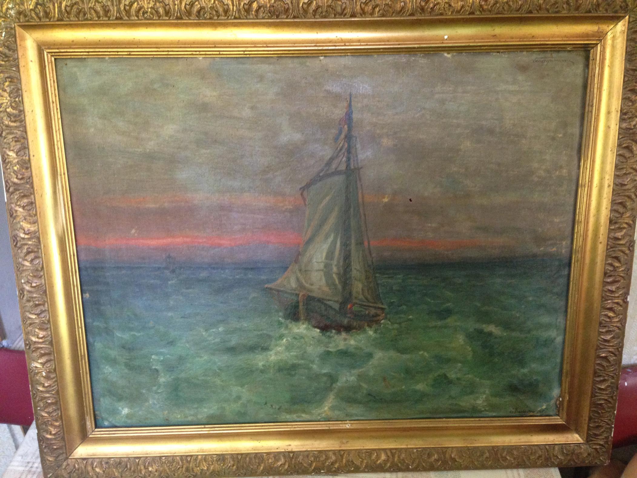 вот такая вот картина хранится долгие годы в доме владельца, не подозревали кто был художникам . бумага была наклеена на задней стороне картины , лишь несколько лет назад случайно узнали от человека разбирающемся в этой сфере что картина принадлежала кисти Бехруза Кенгерли, написанное во время его обучения в Тбилиси. |