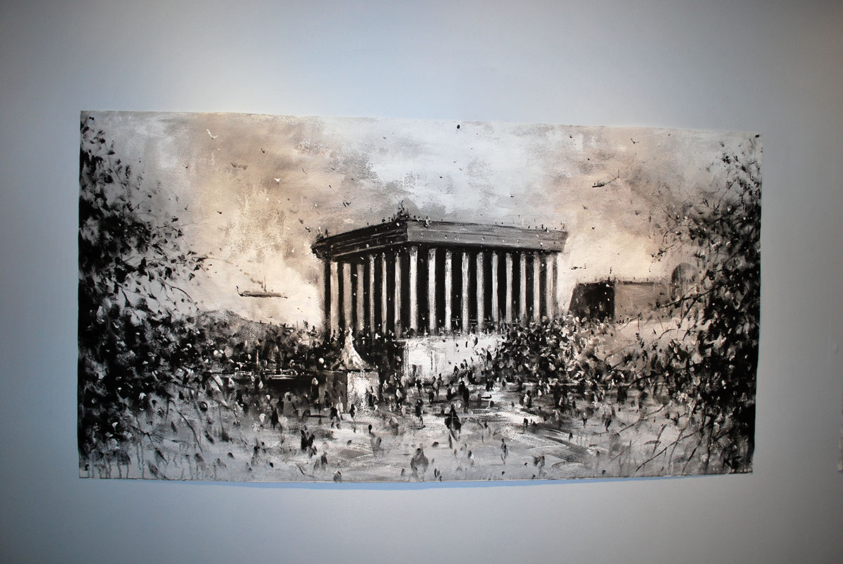 Ведуты - это жанровые городские пейзажи по-итальянски. В случае Константина Батынкова это, конечно, пейзажи абсурдного апокалипсиса. Рисунков - море, но взгляд выхватывает, то штурм Манежа, то еще чего похлеще. Ценовые ориентиры такие: 100х200 - 6000$, 140х100 - 4000$, 60х80 бумага - 1500$. На Винзаводе у Сергея Попова до 26 февраля.