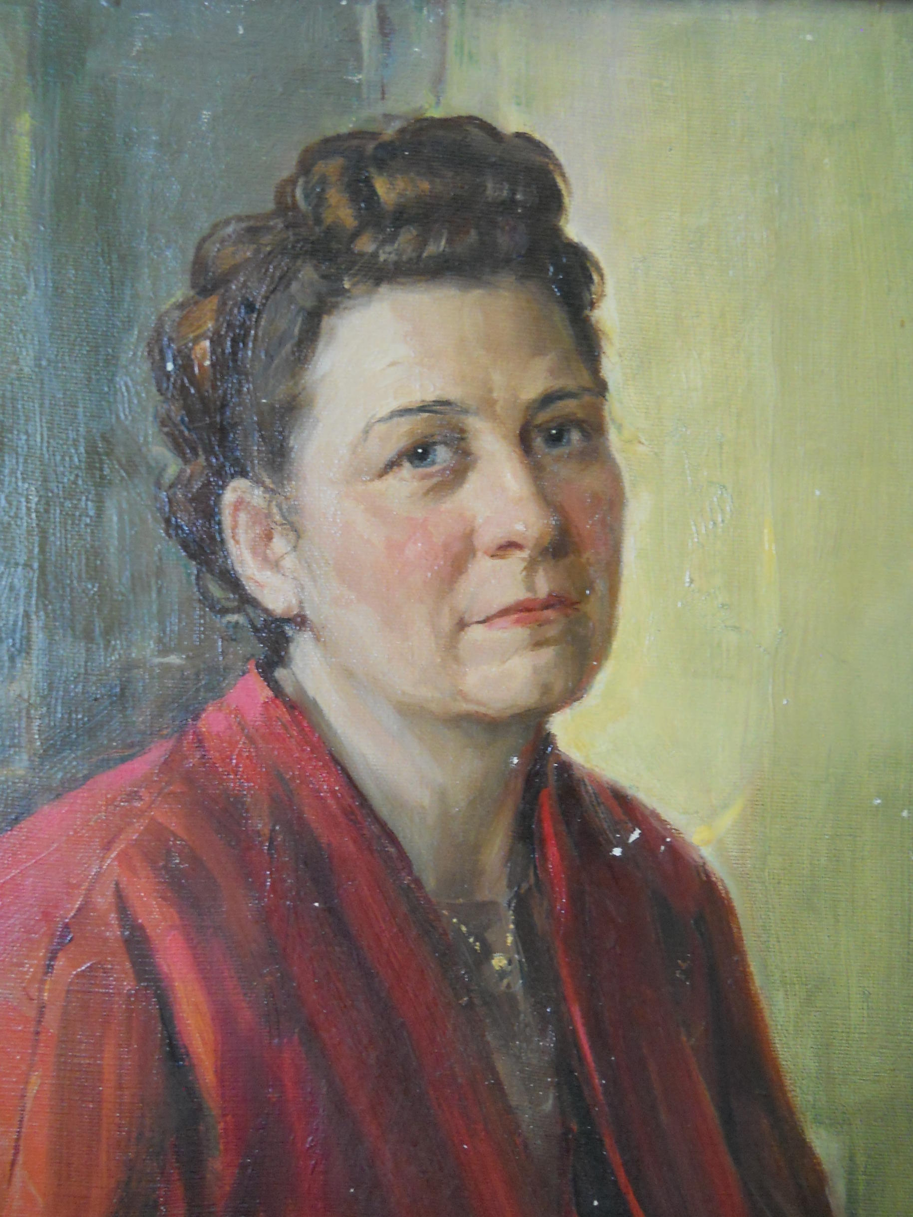 Портрет "Девушка в красном". Холст, масло, деревянная рама. 1960 год.