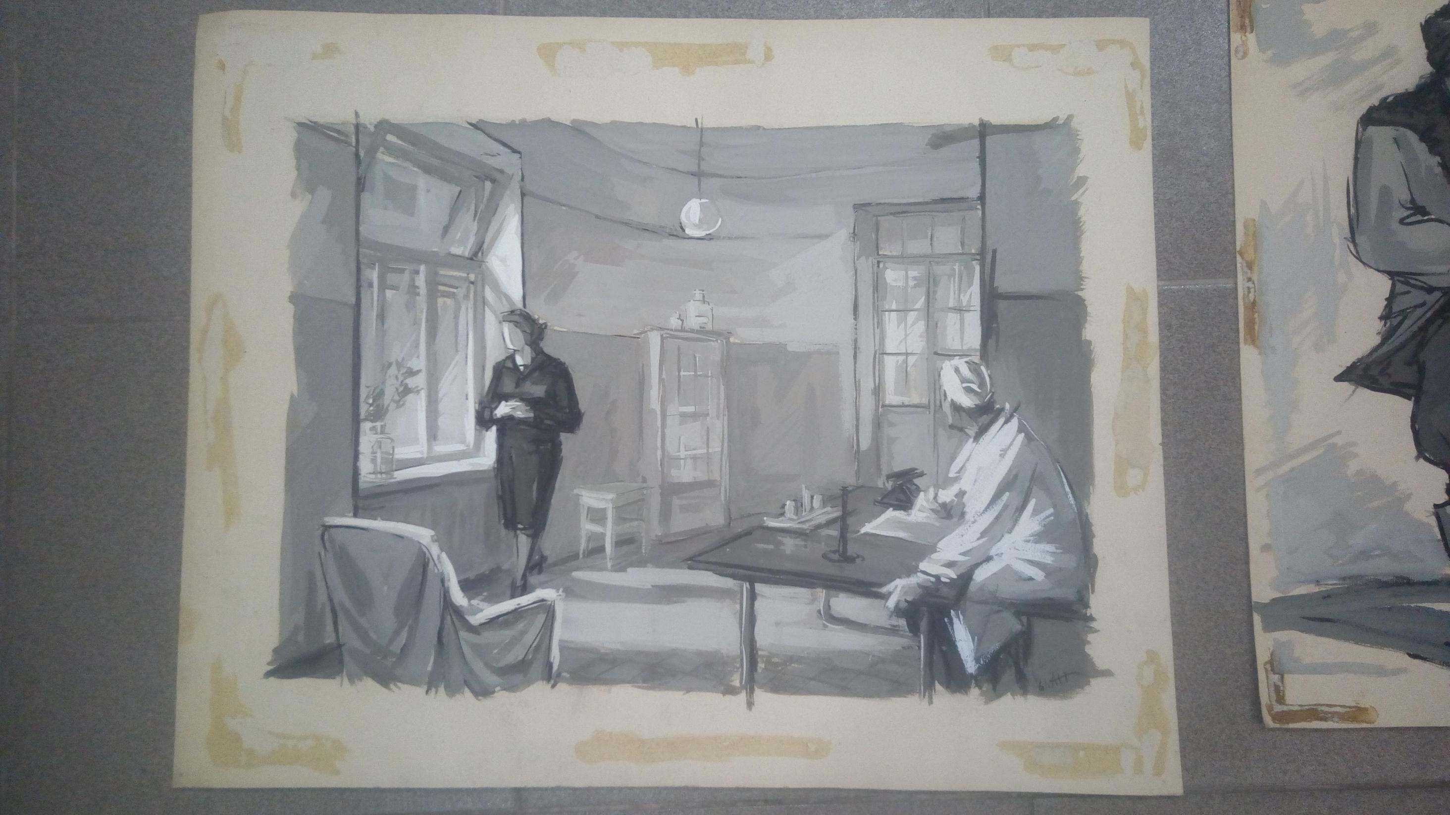 29 марта 1907 — 23 марта 1985 Художник. Окончил Ярославский художественно-педагогический техникум, в 1933 — киноотделение Художественного института при Академии художеств в Ленинграде. Художник-постановщик, декоратор и бутафор на к/ст «Совкино» в Москве (ныне — «Мосфильм»). Эскизы декораций к фильмам. Бумага гуашь. Размер 59*47. Цена 10000 руб. за эскиз. |