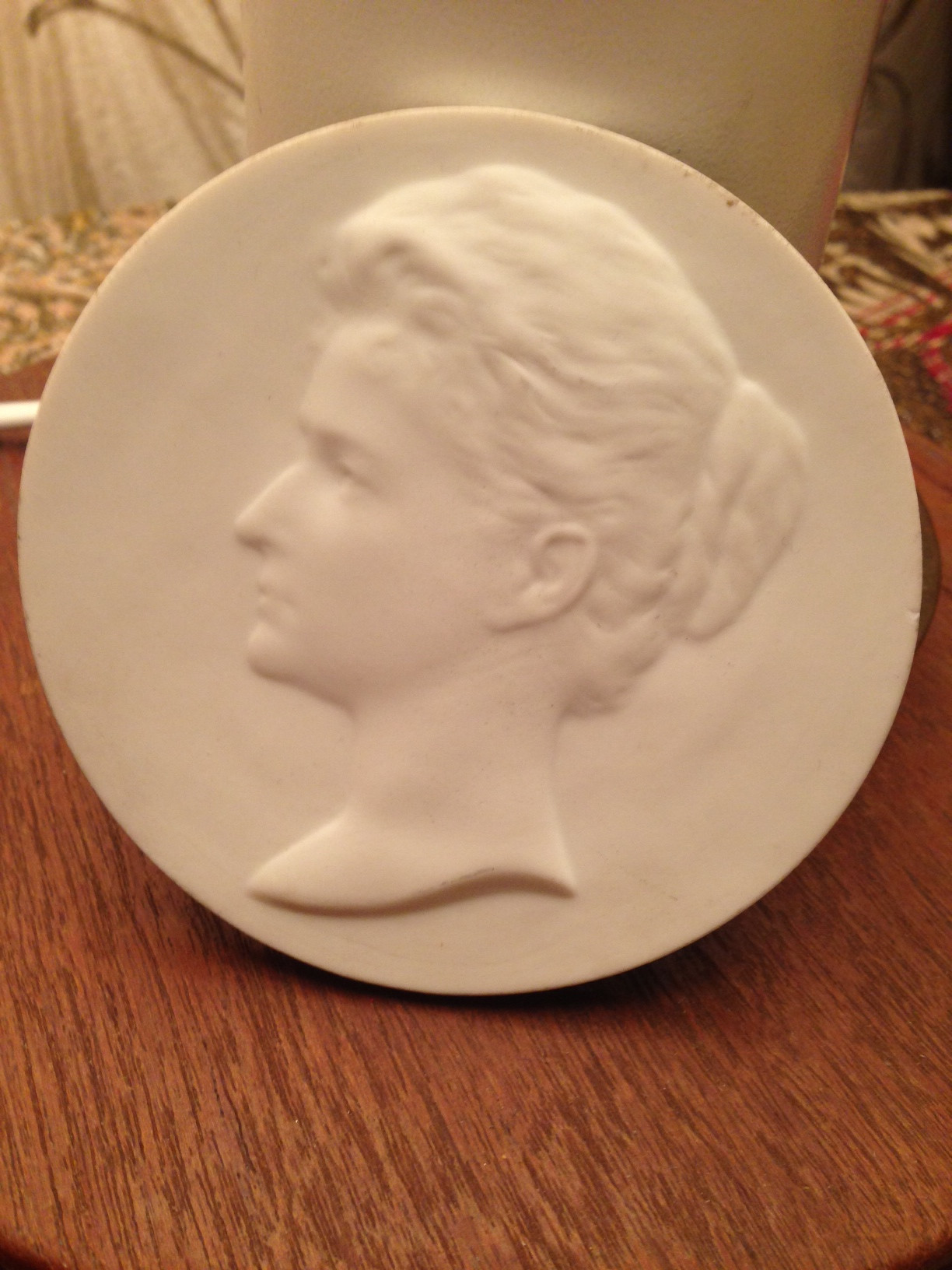 2). Фарфоровый медальон с портретом Императрицы Александры Федоровны. Императорский фарфоровый завод, 1914 г. На оборотной стороне в центре медальона клеймо Императорского фарфорового завода вензель Императора Николая II и год «1914». Бисквит. Диаметр 97 мм. Состояние очень хорошее.Данные медальоны преподносились почётным гостям завода . Жду предложений! |
