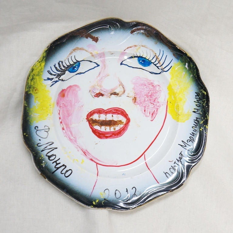 Продам работу Влада Мамышева-Монро "Портрет Мэрилин Монро", 2012г., диаметр 25см, акрил, кузнецовский фарфор конец 19в..